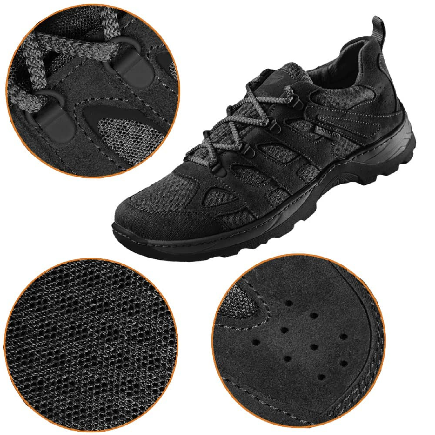 Кроссовки Camotec Patrol 2.0 Черный изготовлены из нубука - высококачественной мелко ворсистой натуральной кожи, обработанной методом шлифовки. Этот метод удаления верхнего слоя кожи делает ее более гигроскопичной, податливой и износостойкой.
