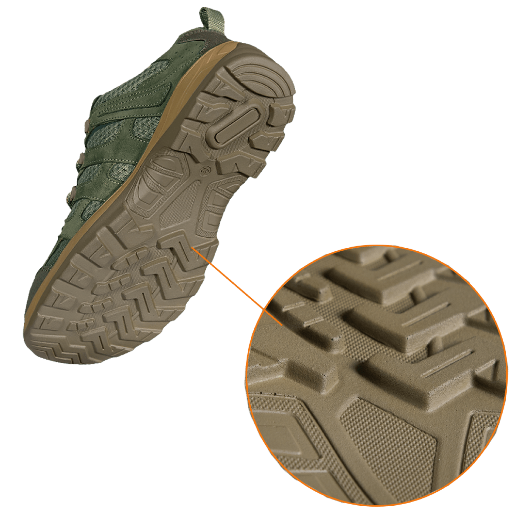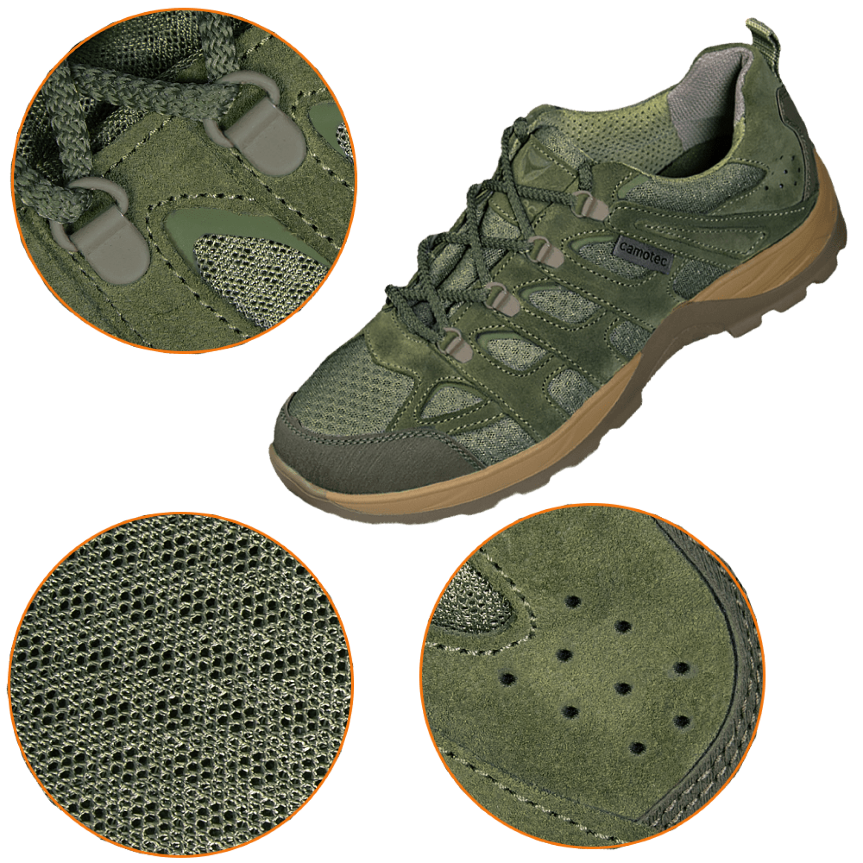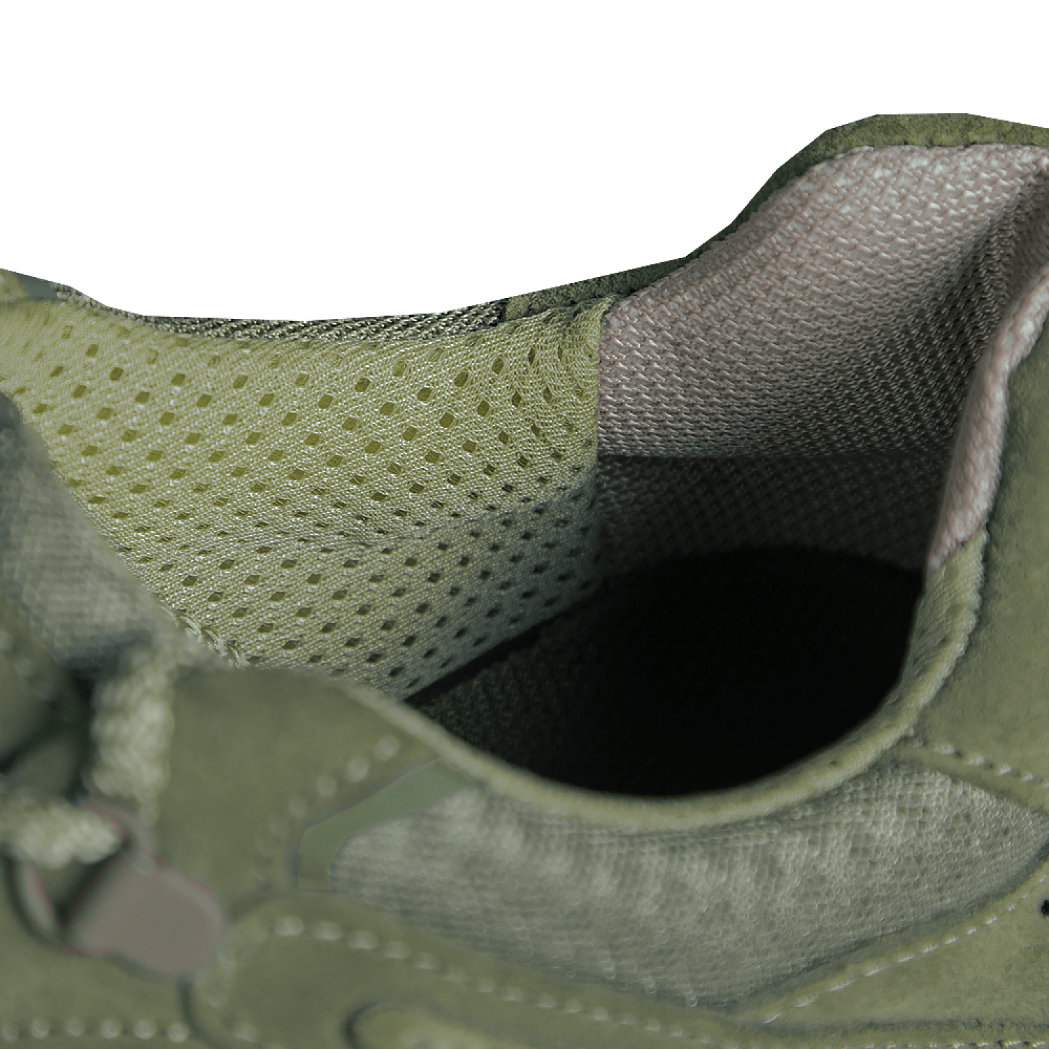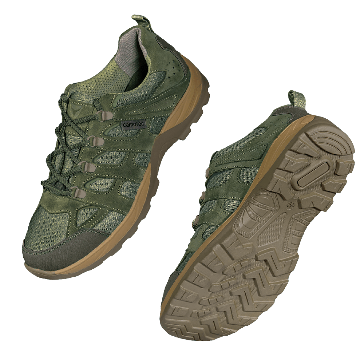 Кроссовки Camotec Patrol 2.0 Олива изготовлены из нубука - высококачественной мелко ворсистой натуральной кожи, обработанной методом шлифовки. Этот метод удаления верхнего слоя кожи делает ее более гигроскопичной, податливой и износостойкой.