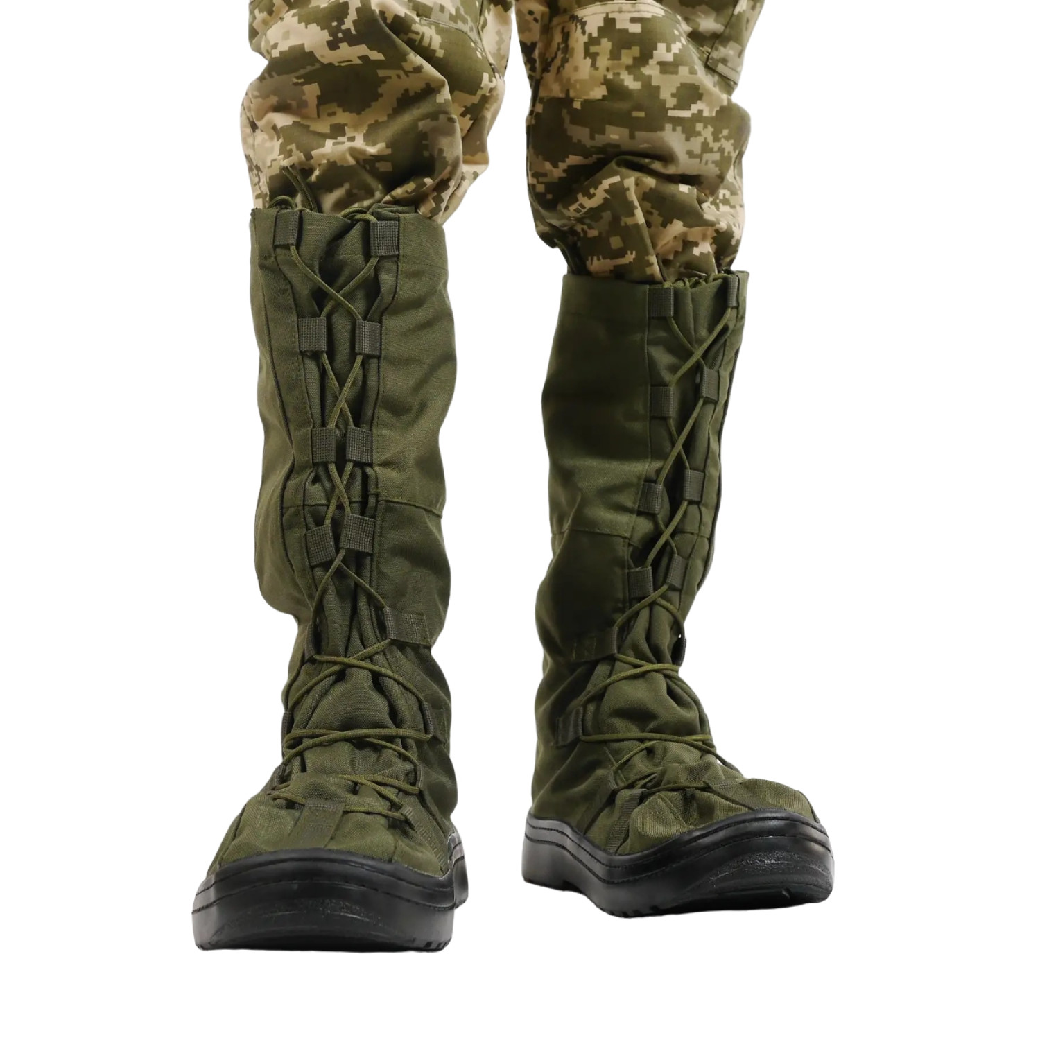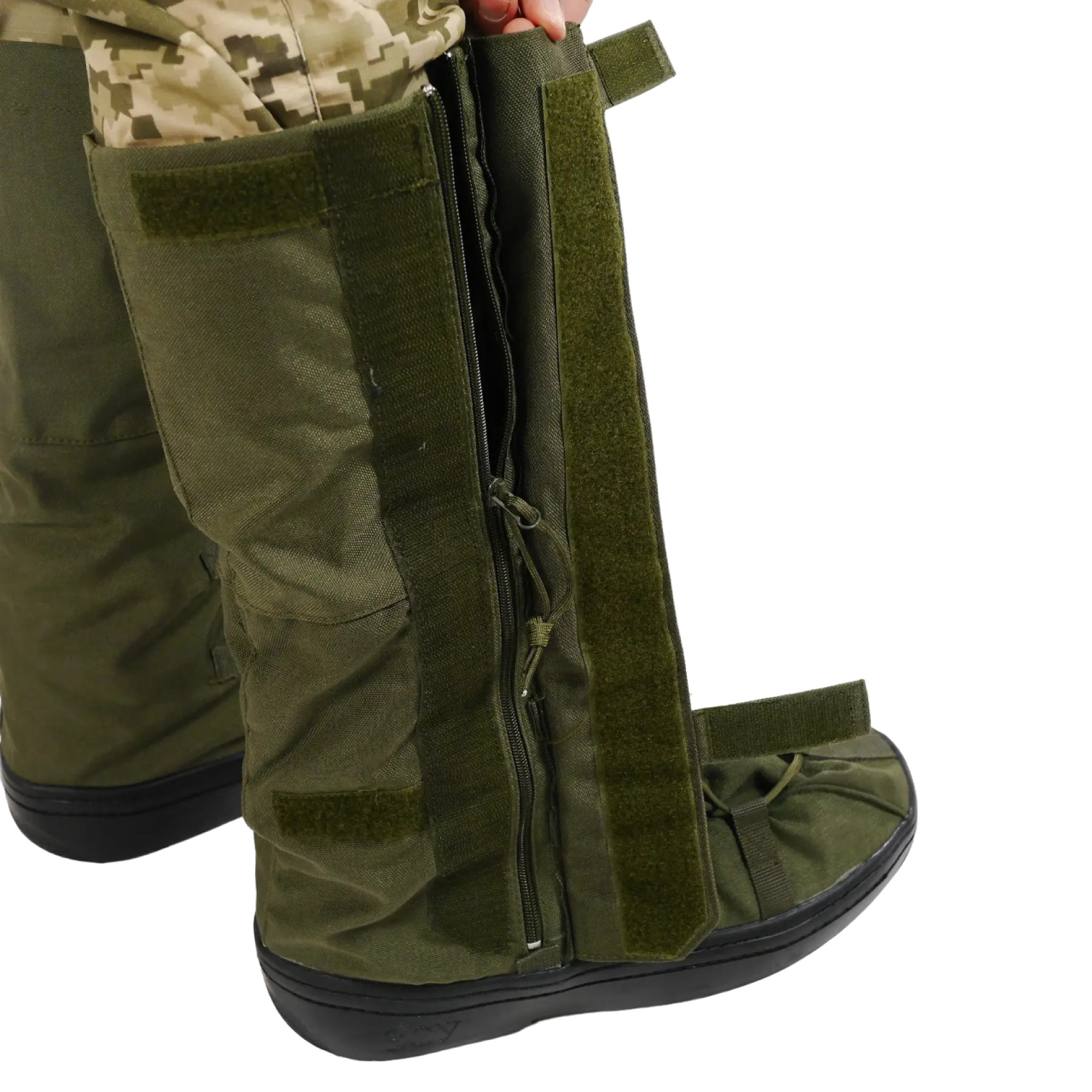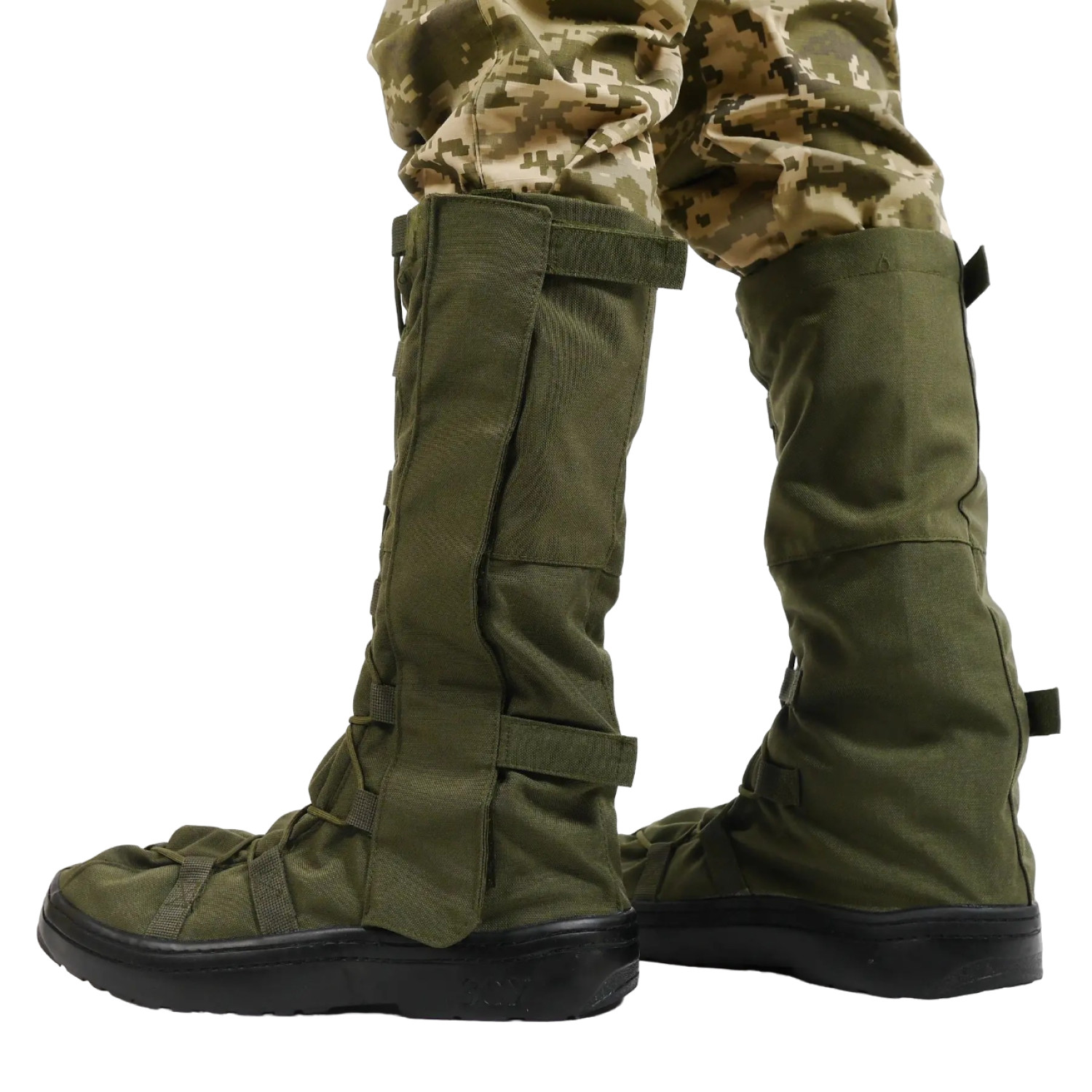 Бахилы тактические водозащитные Олива предназначены для использования в различных погодных условиях, обеспечивая защиту от влаги и грязи.