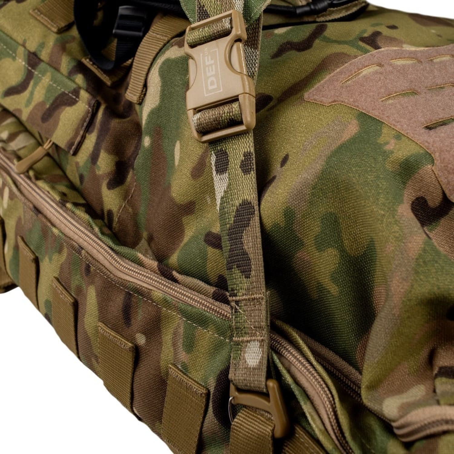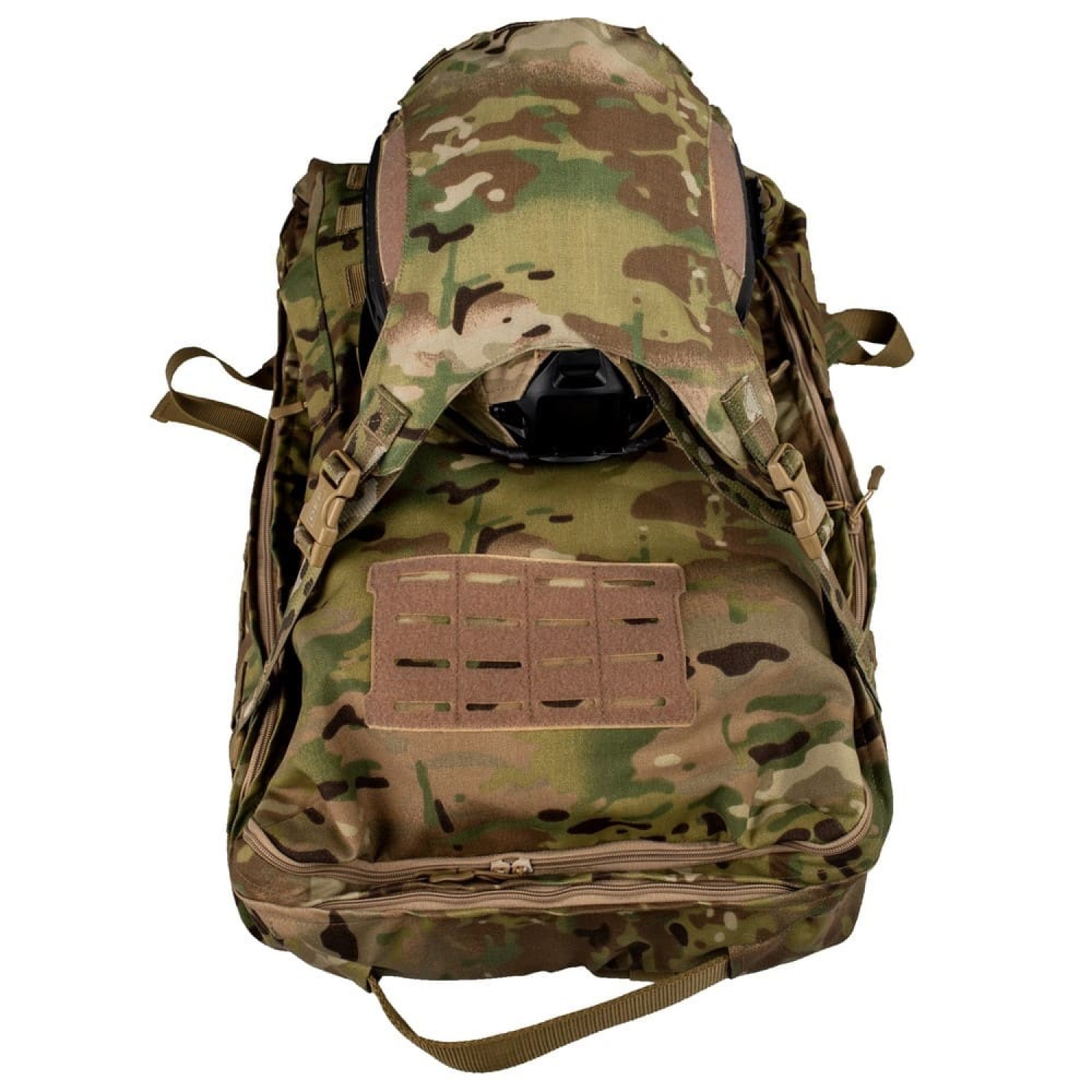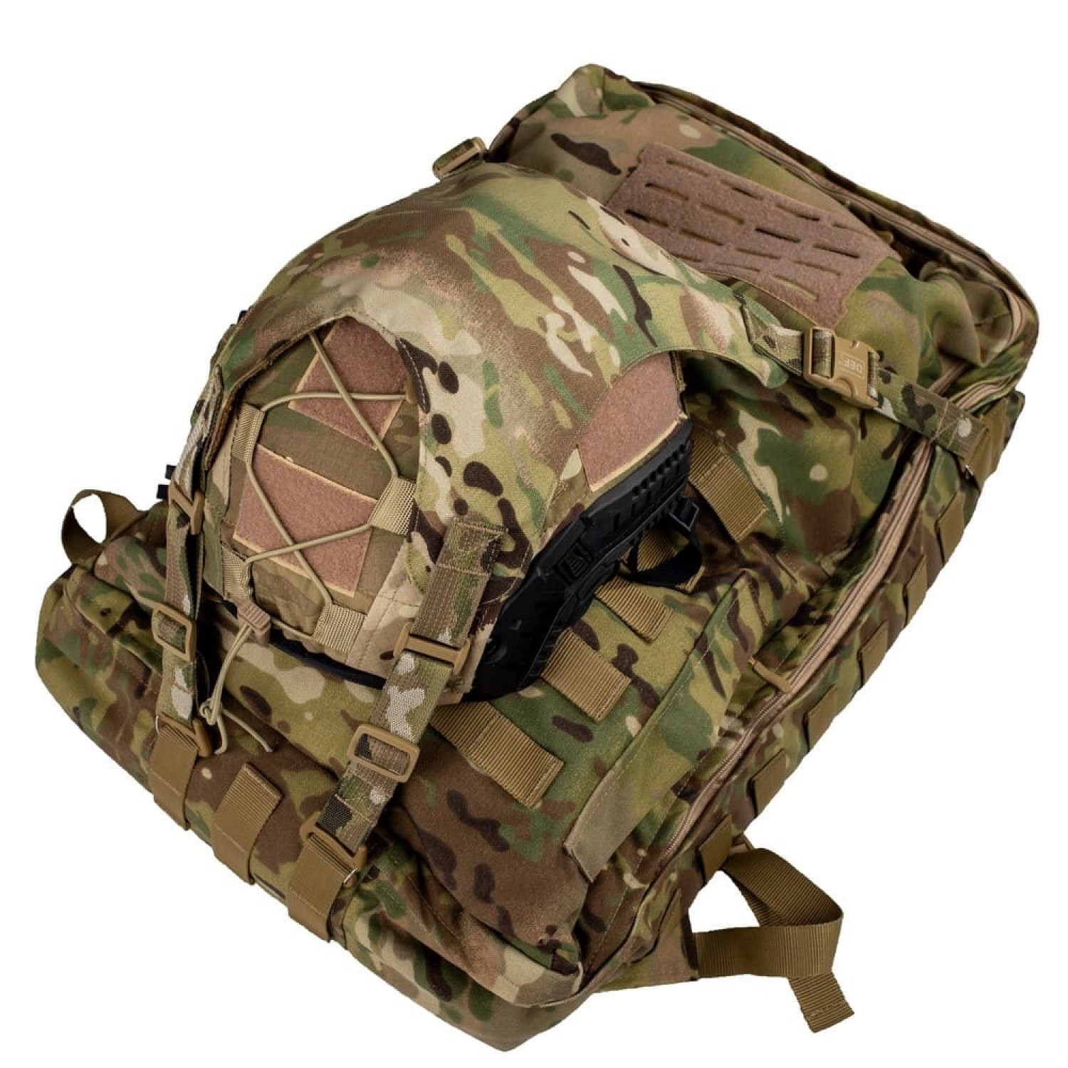 Крепление для шлема DEFua Лемур Мультикам - это навесной аксессуар для рюкзаков и рюкзаков, предназначенный для фиксации и транспортировки защитных шлемов в походном положении. С внутренней стороны имеет встроенный кармашек-органайзер для каверов, аксессуаров с креплением NVG, батареек и тому подобное.