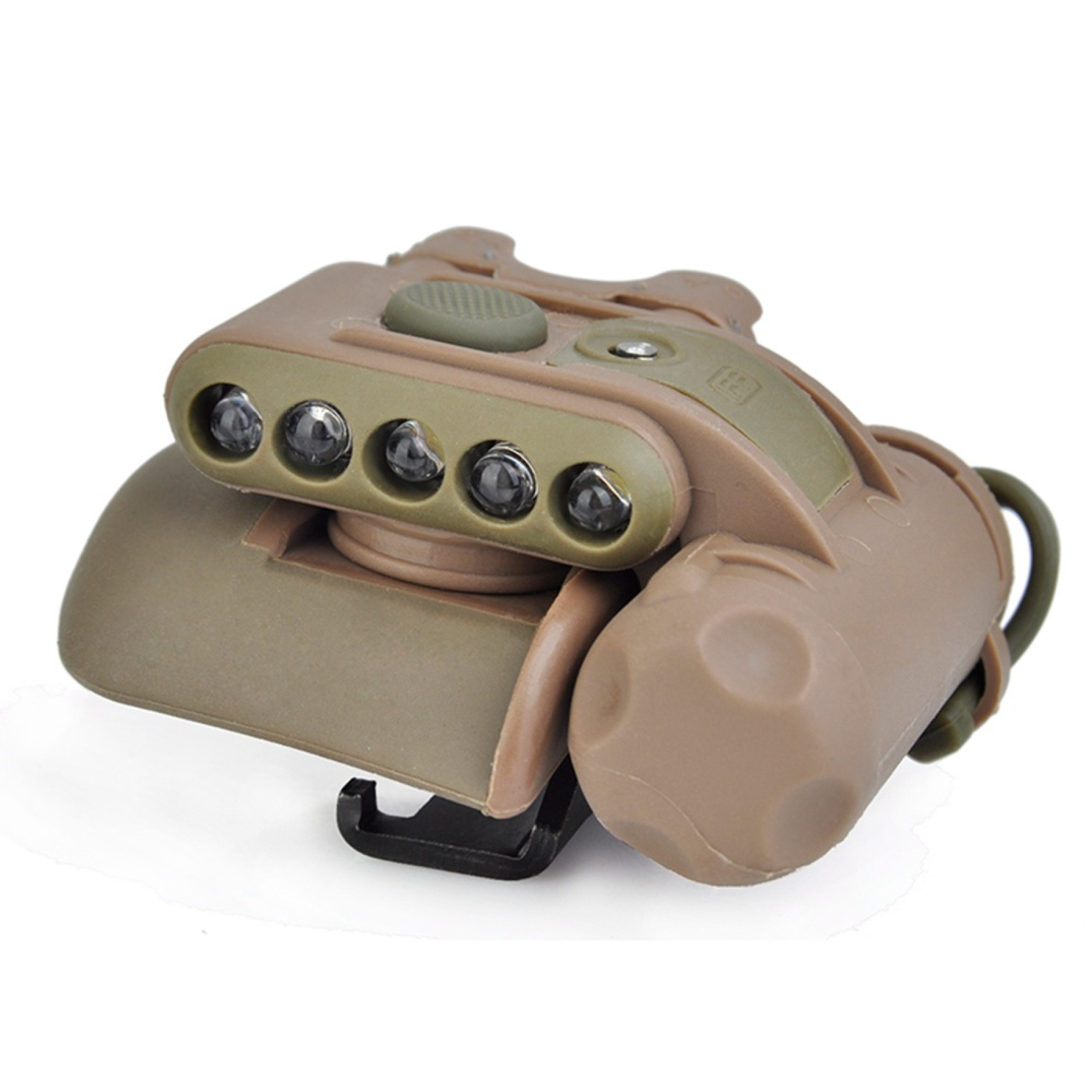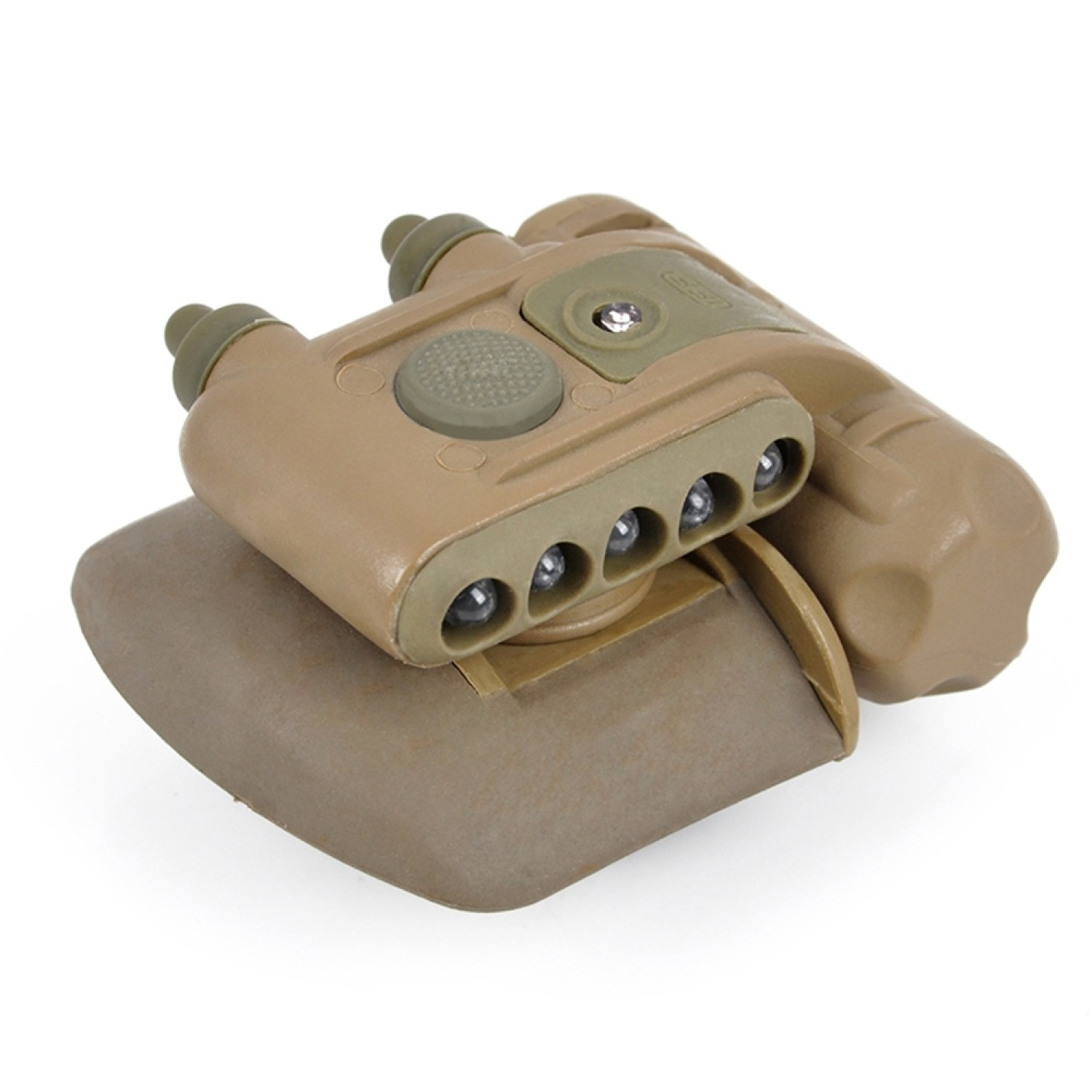 Тактический фонарик на шлем WADSN Gen 2 WEX029 Койот оснащен режимами красного и белого света. Он совместим с большинством шлемов, таких как MICHT, FAST и их аналоги, крепится сбоку на рейку. Этот фонарь также можно установить на оружие благодаря креплению для планки Пикатини, которое входит в комплект. Устройство оснащено тремя белыми и двумя красными светодиодами с регулируемой яркостью. На боковой части расположен инфракрасный маячок IFF, обеспечивающий идентификацию союзных сил через дроны, приборы ночного видения и другие специальные оптические устройства. Питание осуществляется от батарейки CR123A, которая идет в комплекте.