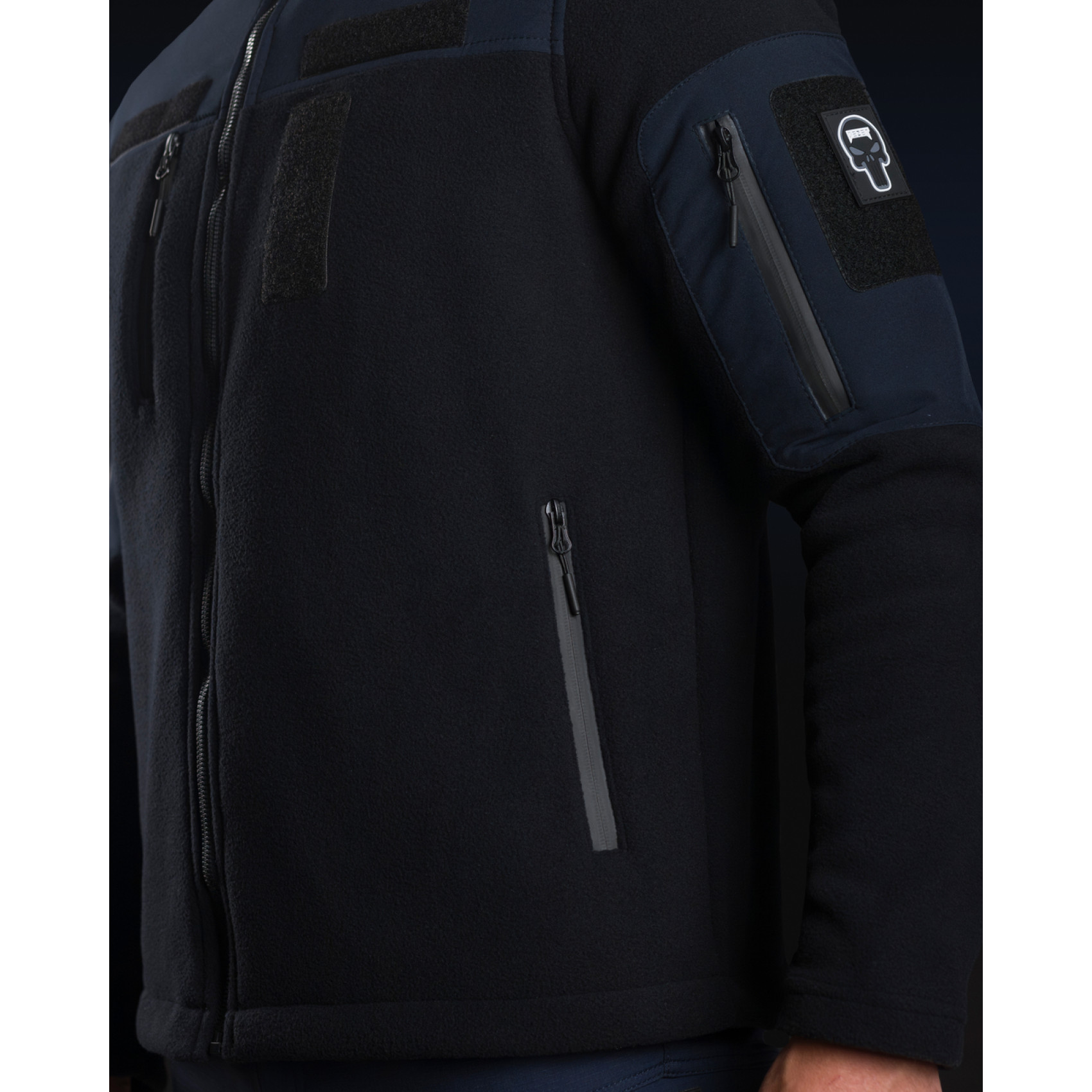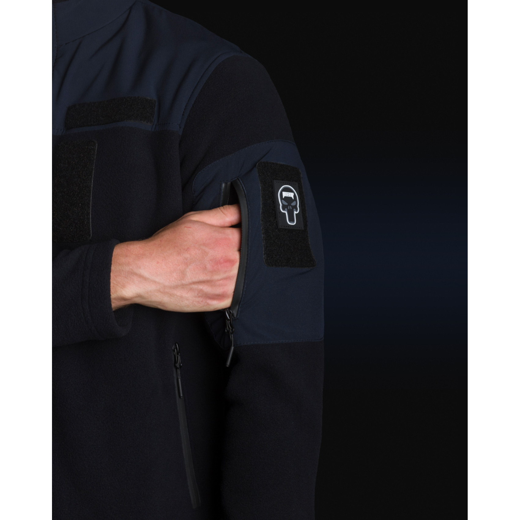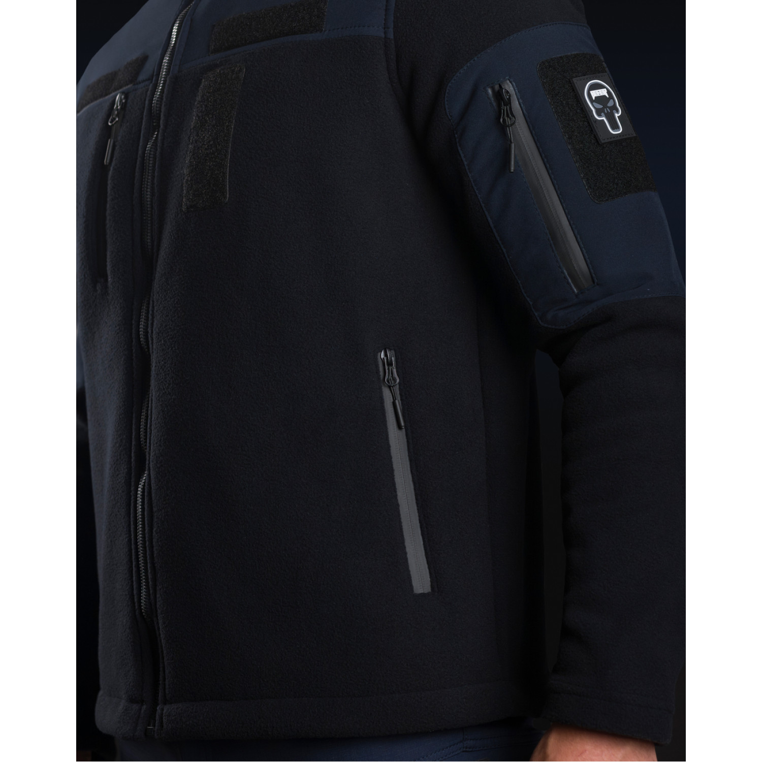- На рукавах присутствуют дополнительные карманы на прорезиненных молниях и объемные липучки для размещения тактических шевронов;