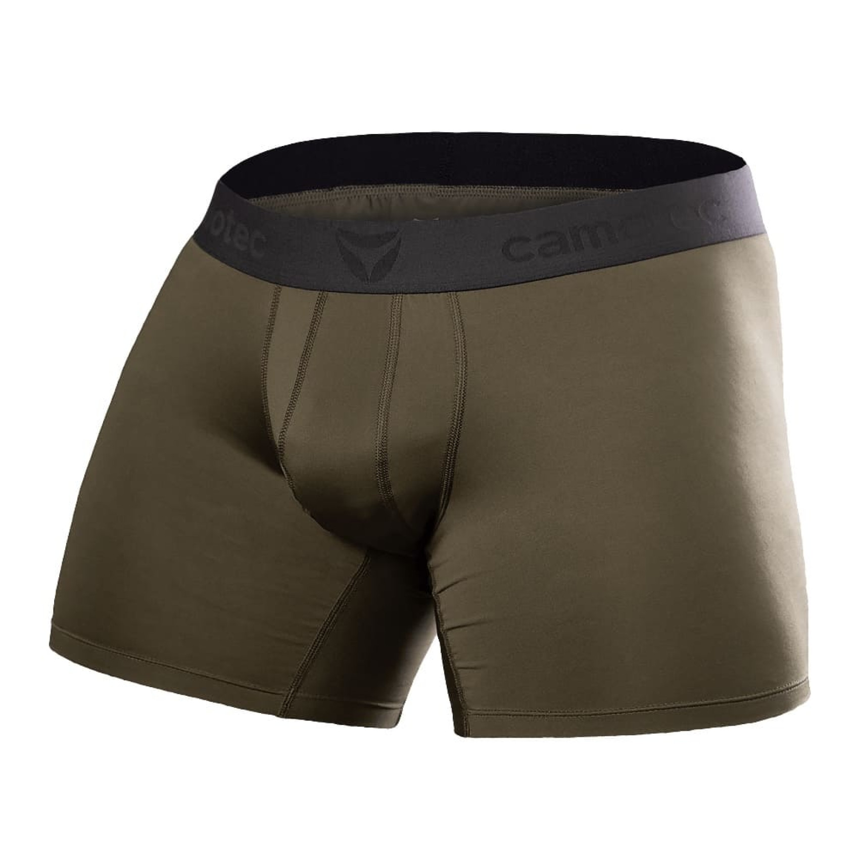 Мужские трусы-боксеры Camotec Олива выполнены из ткани CoolTouch. Это инновационная, гипоаллергенная ткань, которая была разработана для тропических регионов с высокой влажностью и температурой, поэтому прохладная на ощупь, даже в жару. Материал отводит лишнюю влагу от тела и быстро сохнет от температуры тела, поэтому вы чувствуете себя комфортно во время любой физической активности.