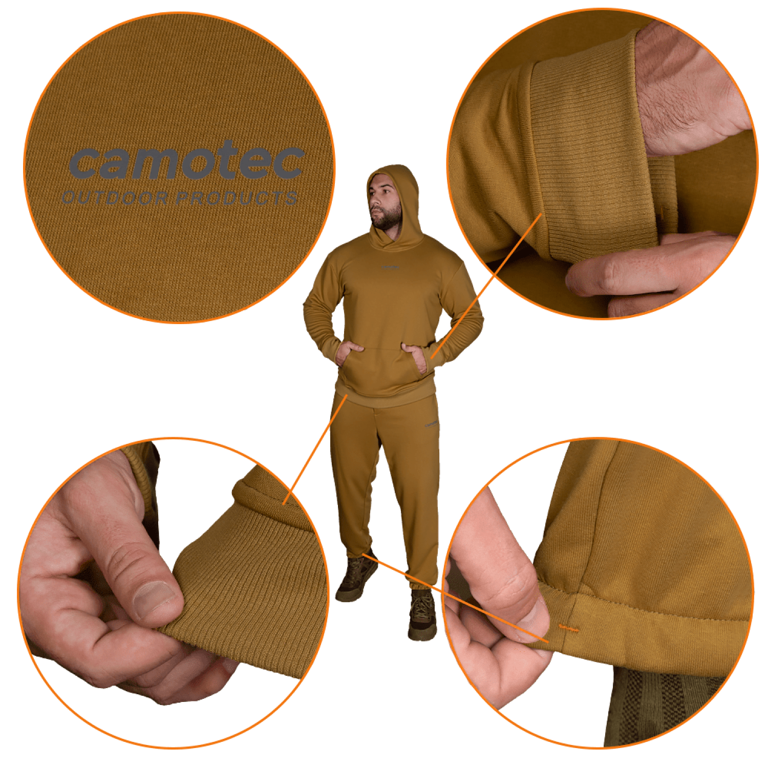 Спортивный костюм Camotec Basic Hood 2.0 Койот - базовый спортивный наряд с капюшоном, который идеально подходит как для повседневных прогулок, так и как удобная домашняя одежда.