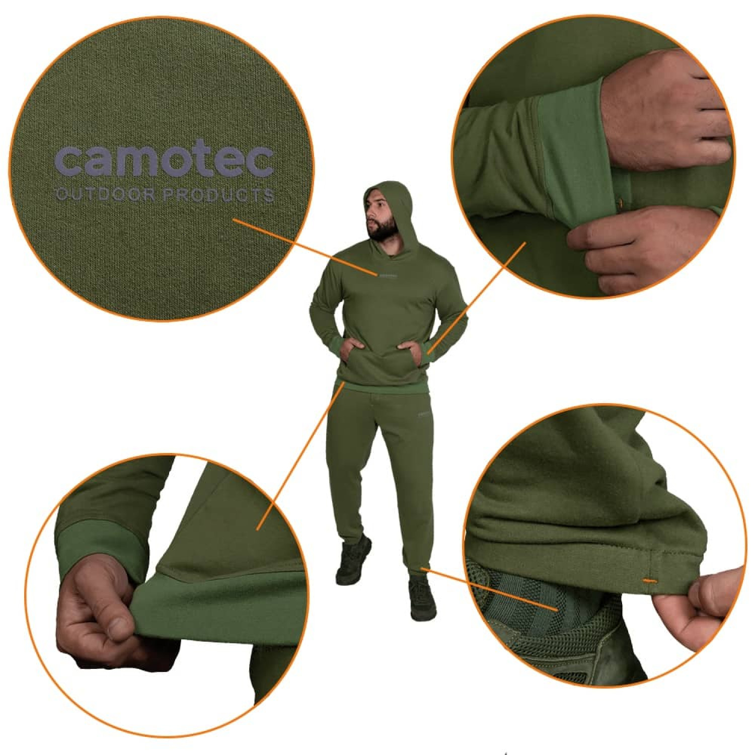 Спортивный костюм Camotec Basic Hood Cotton Олива с капюшоном, который подойдет для прогулок, на каждый день или как базовая домашняя одежда.