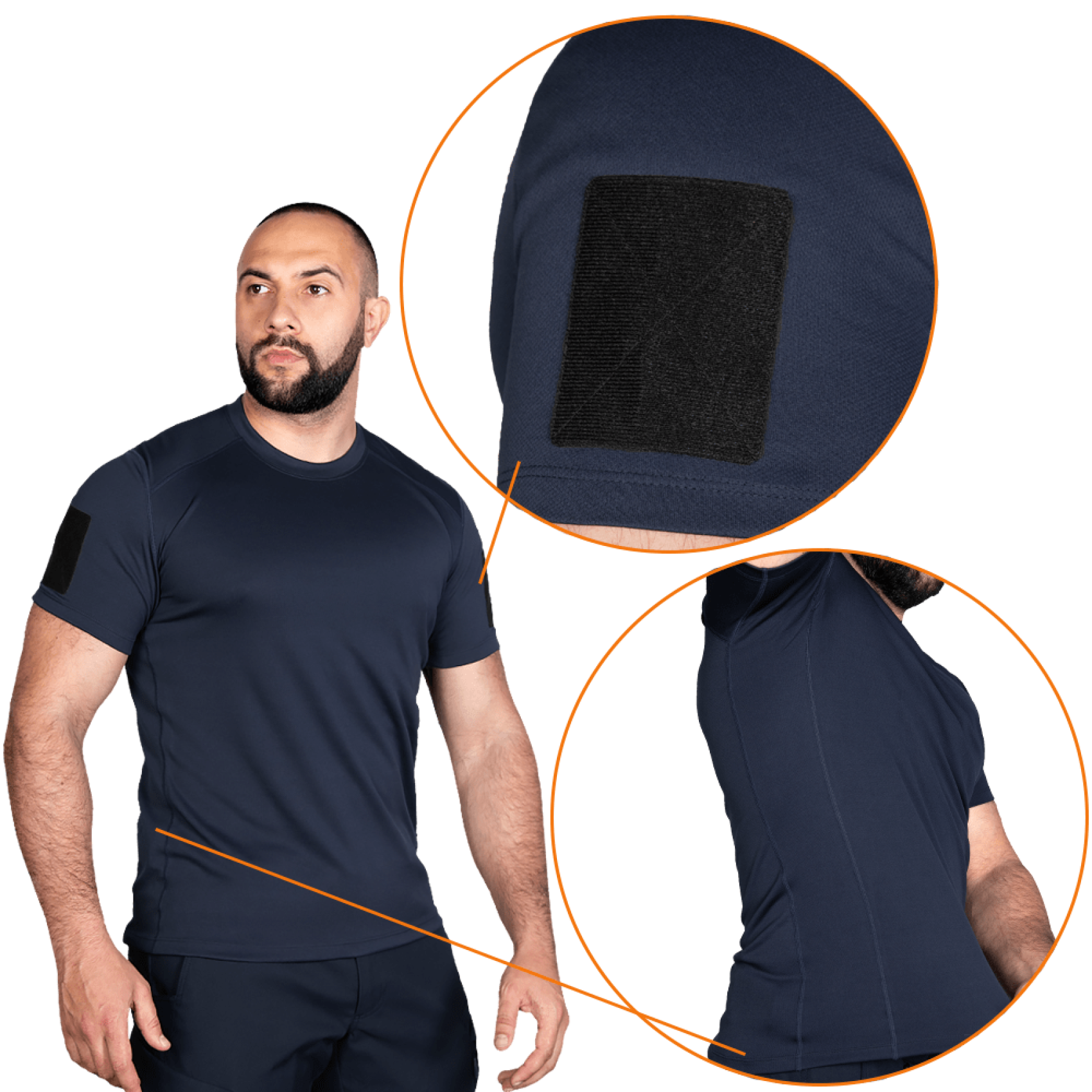 Футболка имеет эргономичный крой и плоские швы, а также смещенные швы на плечах, обеспечивая свободу движений и комфорт при длительном использовании. Благодаря липучкам под шевроны и патчи на рукавах, футболка легко адаптируется под индивидуальные потребности и требования пользователя.