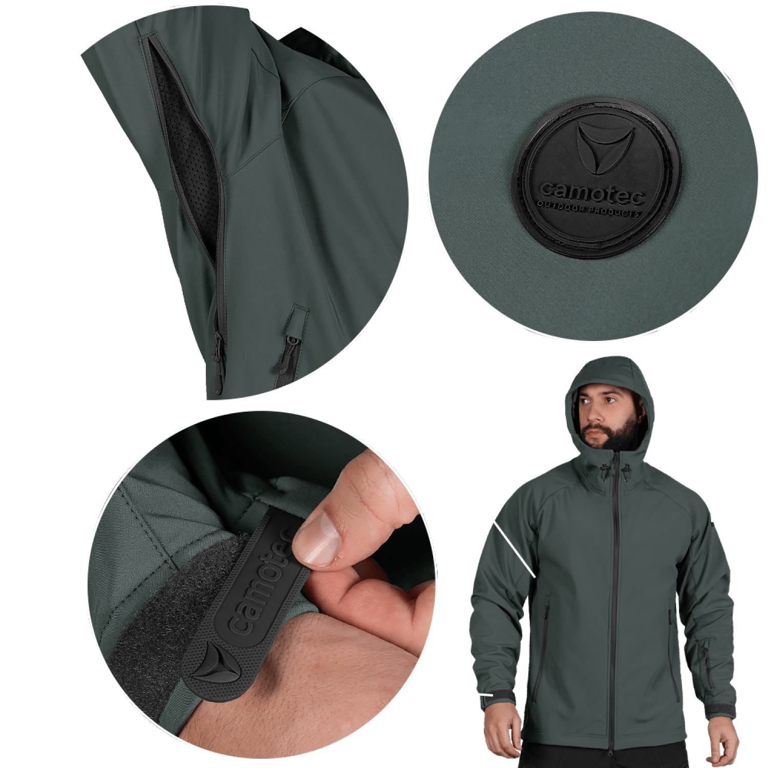 Куртка Camotec Rubicon SoftShell Графит - это универсальная модель, идеально подходящая для активного отдыха, туризма и повседневного использования. Она изготовлена из высокотехнологичной ткани с отличной защитой от влаги и ветра, обеспечивая надежный комфорт в различных условиях. Это неотъемлемая вещь для людей, которые ценят стиль и функциональность.