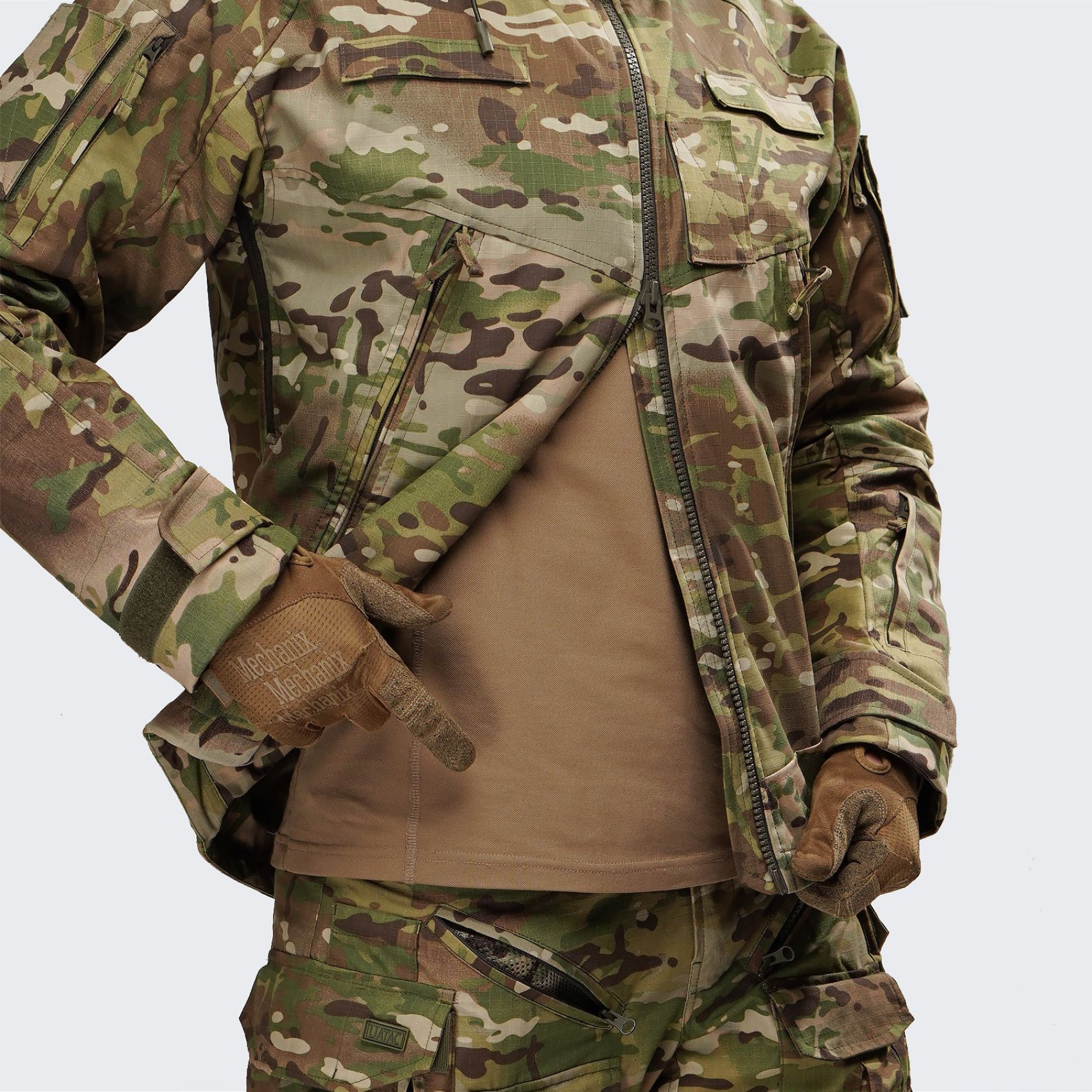 Тактическая демисезонная куртка UATAC Gen 5.6 Ripstop Мультикам - специально разработана для военнослужащих, осуществляющих операции в различных условиях. Внимательно спроектированный дизайн и расположение всех элементов учитывают все потребности бойцов, взяв во внимание опыт использования таких курток на поле боя. Внешний материал куртки представляет собой износостойкий Ripstop, усиленный армированными нитями высочайшего качества, произведенными в Германии.