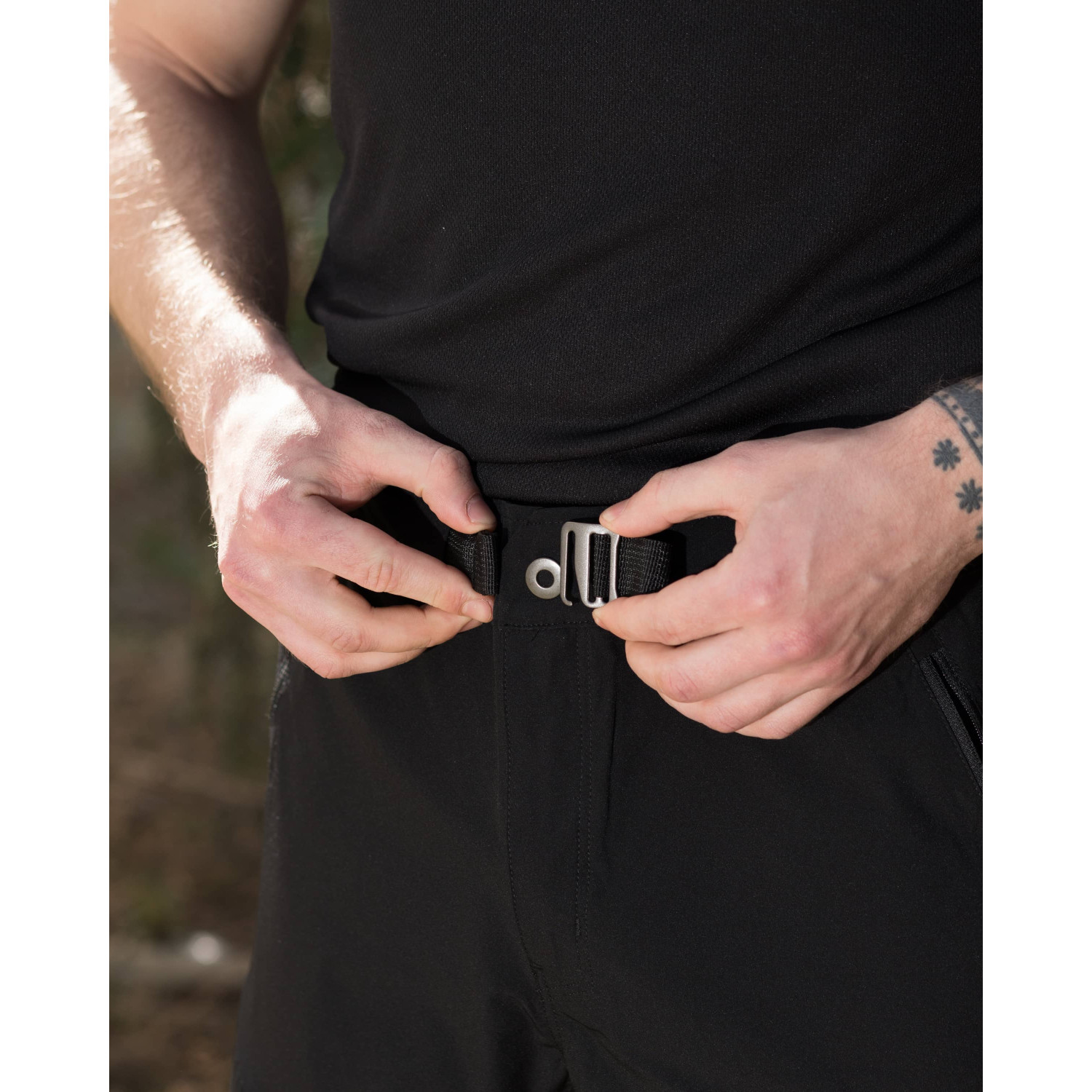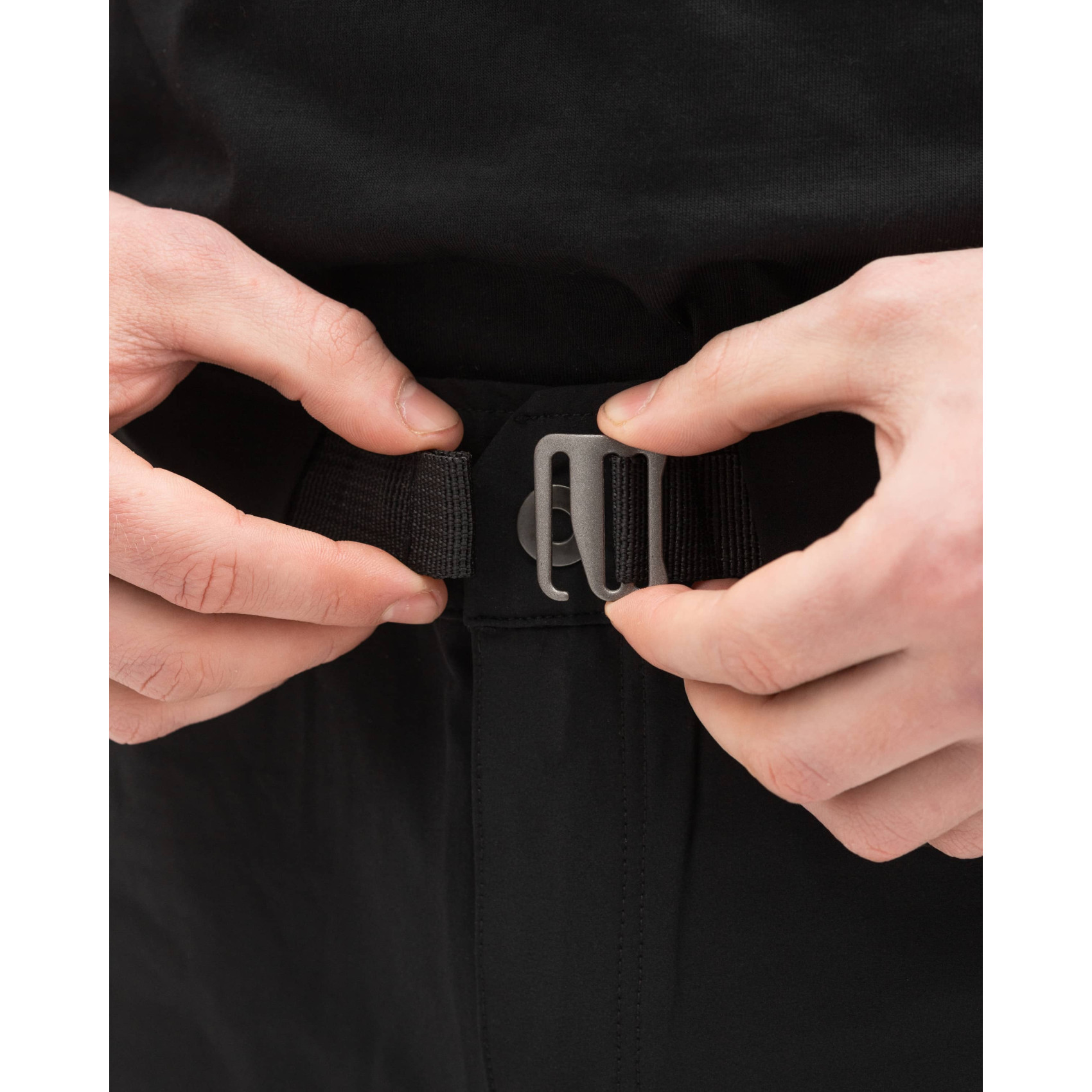 - Пояс застегивается на прочную металлическую пуговицу. Дополнительно присутствует потайной ремень для регулировки объема;