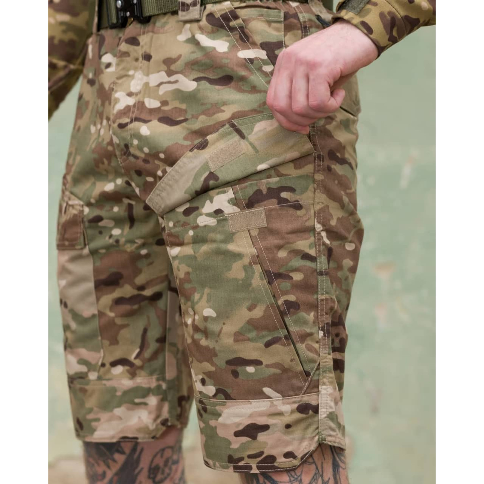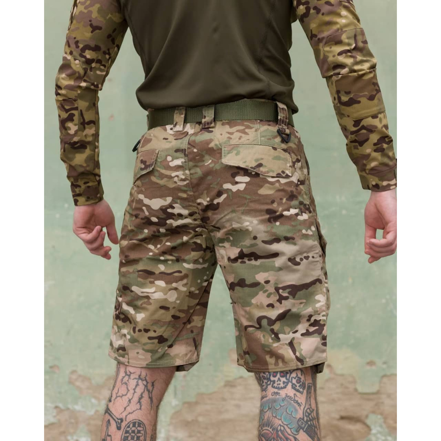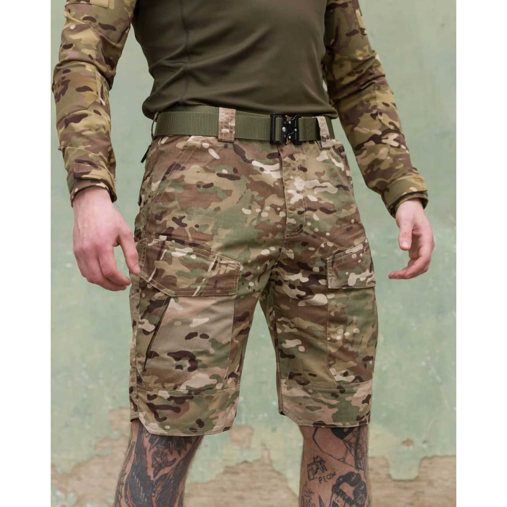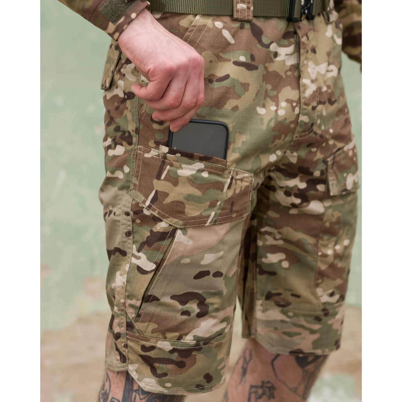 Шорты карго тактические BEZET Military Мультикам изготовлены из рип стопа - текстурной прочной ткани, в структуру которой вплетены армированные нити.