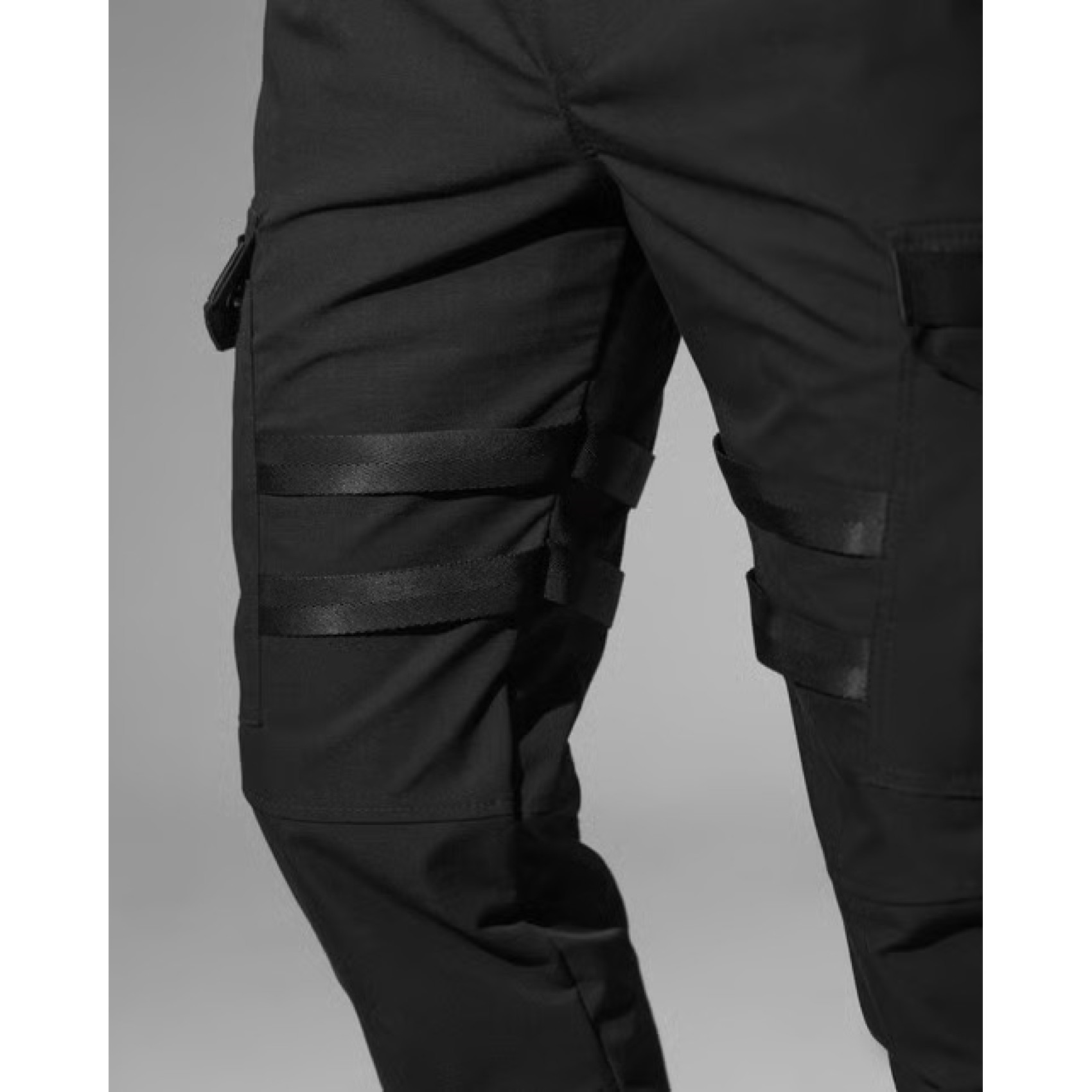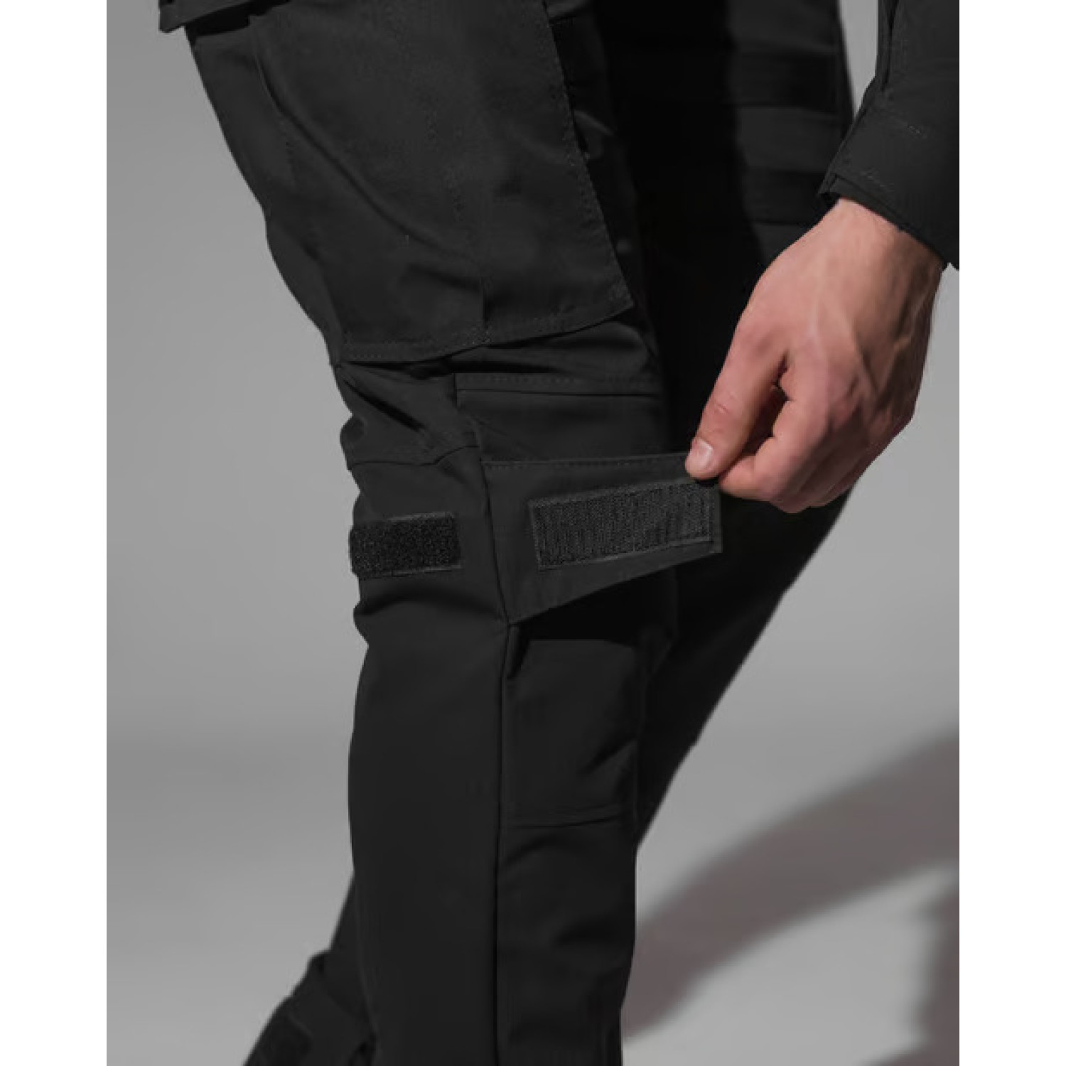 - На клапанах боковых карманов и на ногах присутствует ременная лента для большей фиксации и для использования тактических аксессуаров;