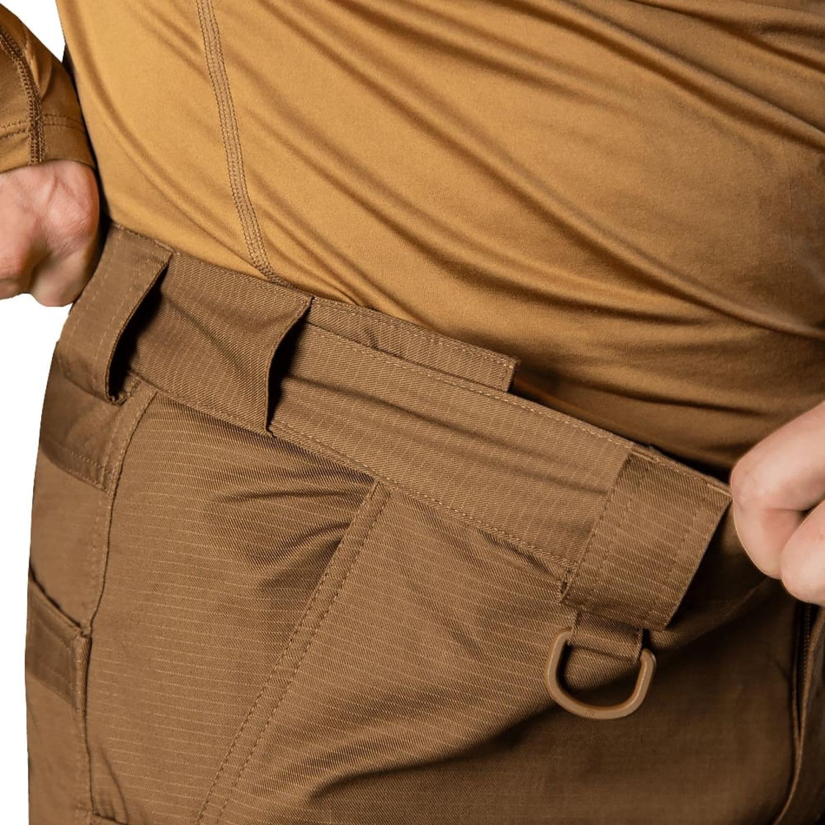 - Прочные широкие петли, которые выдержат тактический пояс с кобурой или подсумками на нем.