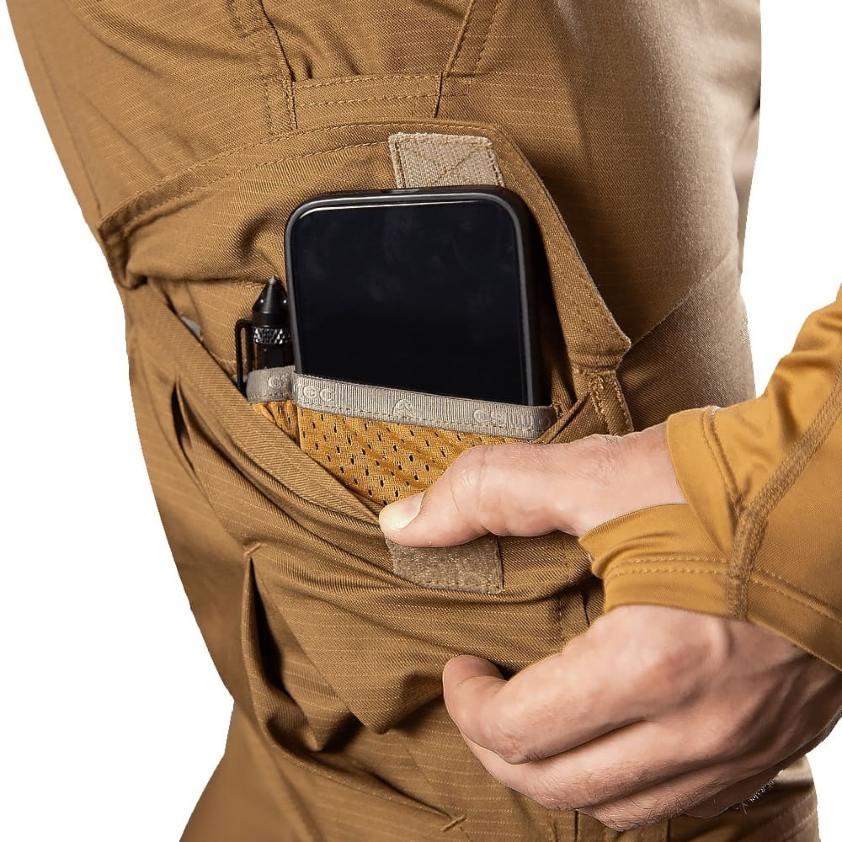 - Слева 2 кармана на бедрах: карго карман, и скрытый выше с молнией и разделителями внутри, что очень удобно для размещения телефона и предотвращения выпадения его при активном движении.