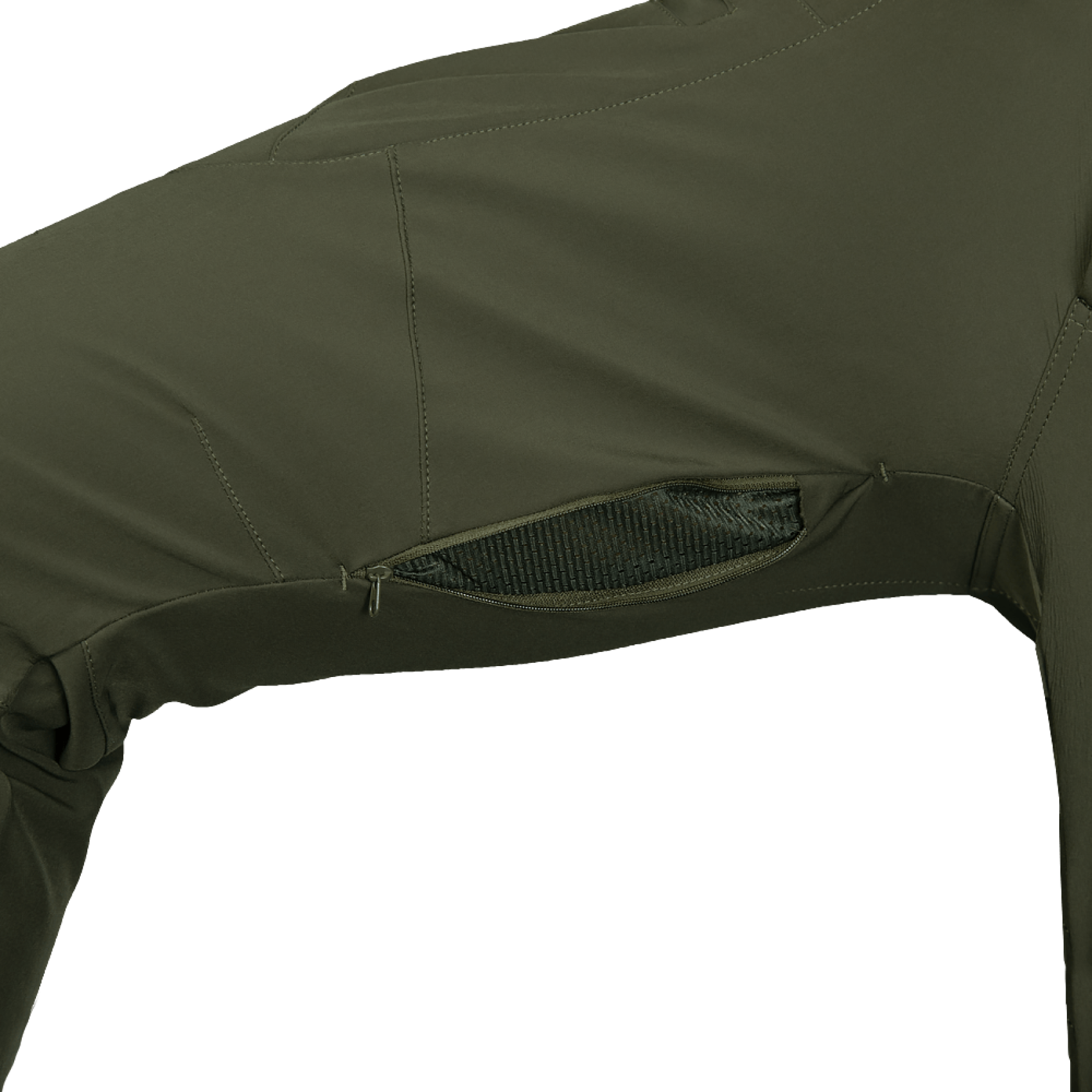 Они также имеют уникальный крой от компании Camotec. Эргономичные выточки в области коленей и специальные вставки в промежности добавляют комфорта и предотвращают натирание при длительном использовании. Одной из ключевых особенностей этих брюк являются вентиляционные отверстия на внутренней стороне бедер, оборудованные сетчатым материалом Cool Mesh для оптимальной вентиляции и охлаждения во время носки. Регулируемые застежки-молнии на этих вырезах позволяют регулировать уровень вентиляции в зависимости от погодных условий и предпочтений пользователя.