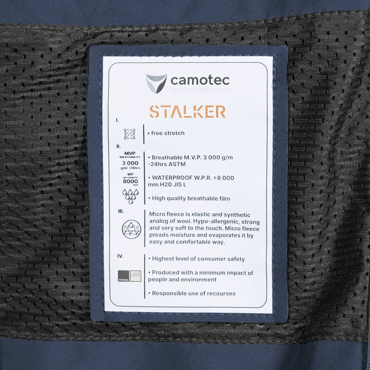 Женская куртка Camotec Stalker SoftShell Синий это легкая, современная ткань с настоящей беспоровой мембраной, которая состоит из трех слоев: микрофлис который сохраняет тепло; мембрана защищающая от ветра и влаги; эластичный полиэстер с влагостойкой пропиткой, который защищает от пыли, грязи и влаги.