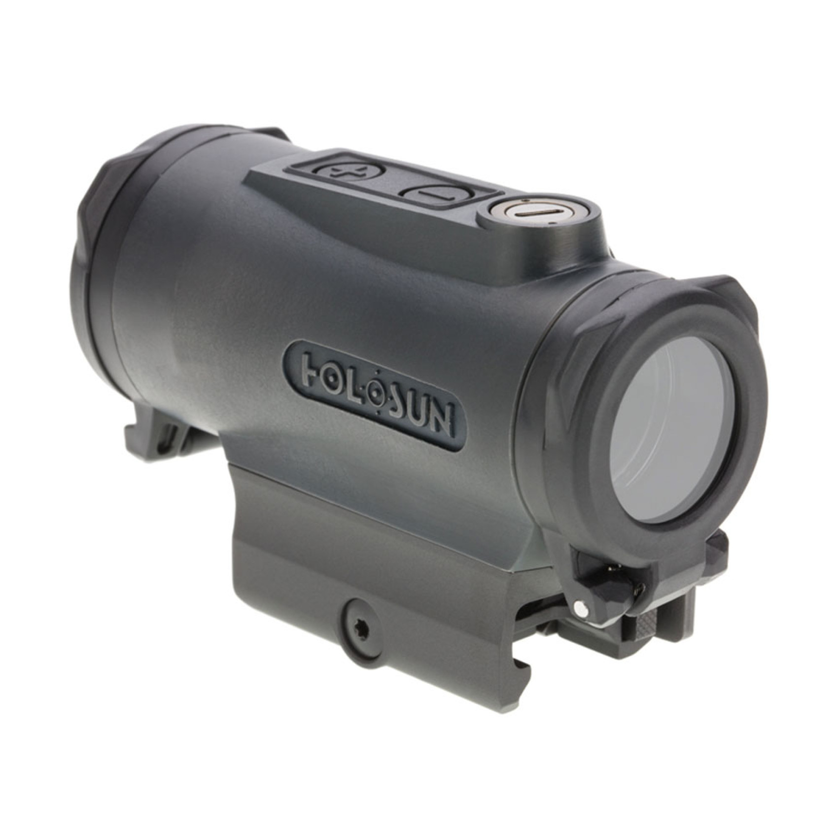 Коллиматорный прицел HOLOSUN HE530G-GR - это высокотехнологичная и прочная модель закрытого типа, выполненная в корпусе из надежного титана. Он имеет объектив диаметром 30 мм, что обеспечивает комфортное прицеливание и широкий угол обзора. Благодаря полному многослойному просветлению всех оптических элементов достигается отличное качество изображения. Модель оснащена откидными прозрачными защитными колпачками для объектива и окуляра, что дополнительно оберегает оптику. Подсветка регулируется кнопками управления, а также имеется боковой отсек для батареи CR2032 и съемная антибликовая сетка killflash. Корпус герметичен, заполнен инертным газом и соответствует уровню защиты IPX8.