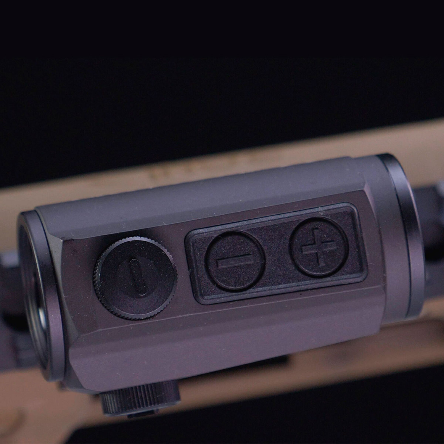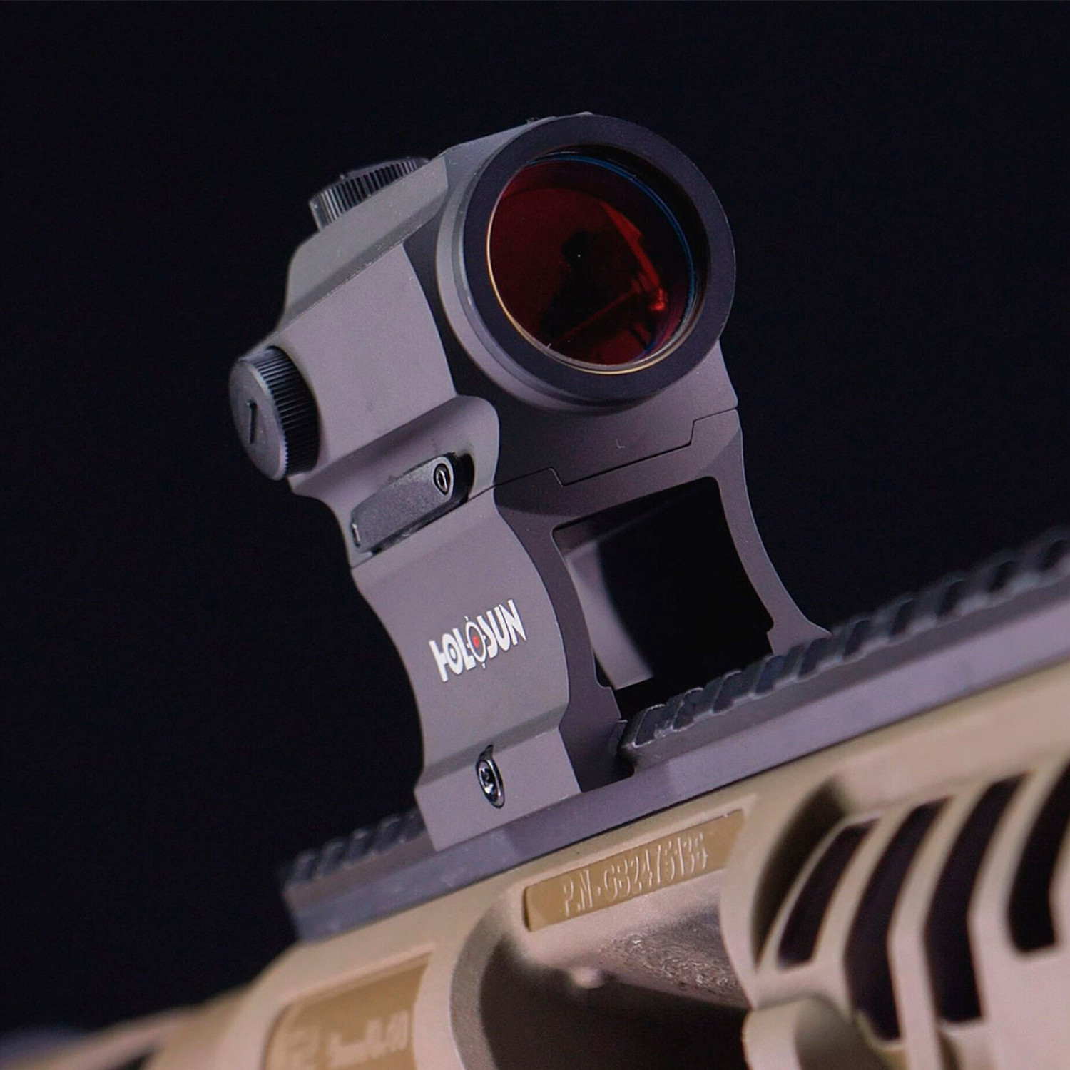 Коллиматорный прицел HOLOSUN HS403B представляет собой модель закрытого типа, выполненную в герметичном корпусе из алюминиевого сплава 6061. Прицельная точка красного цвета имеет размер 2 МОА. Одной из отличительных особенностей этого прицела является электронное кнопочное управление яркостью подсветки, предлагающее 12 уровней (первые два предназначены для ночного использования или работы с ПНВ). Система освещения использует специальный светодиод, который обеспечивает работу до 50 000 часов на одном заряде батареи (CR2032). Корпус прицела соответствует стандарту защиты IP67, а его внутреннее пространство заполнено инертным газом для предотвращения запотевания. Устойчивость к отдаче была подтверждена испытаниями на ударопрочность с нагрузкой до 1000 G. В комплект с коллиматорным прицелом входят высокое и низкое крепление для планки Вивер/Пикатинни, что делает его совместимым с большинством типов оружия.