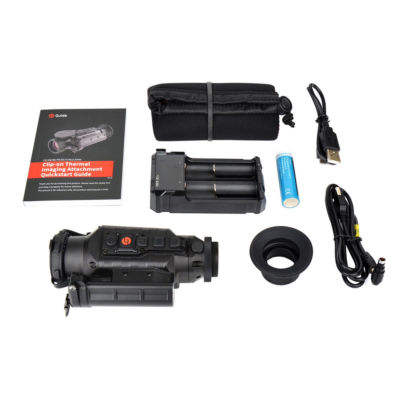 Тепловизионная насадка GUIDE TA421 384x288px 25мм - усовершенствованная модель с объективом 25 мм и широким угловым полем зрения, созданная для монтажа на дневные оптические прицелы. Среди ключевых конструктивных преимуществ устройства - возможность использования сменных аккумуляторов формата 18650. Обновленная матрица с разрешением 384x288 пикселей и улучшенной температурной чувствительностью до 40 мК NETD также придает модели большей точности и четкости.