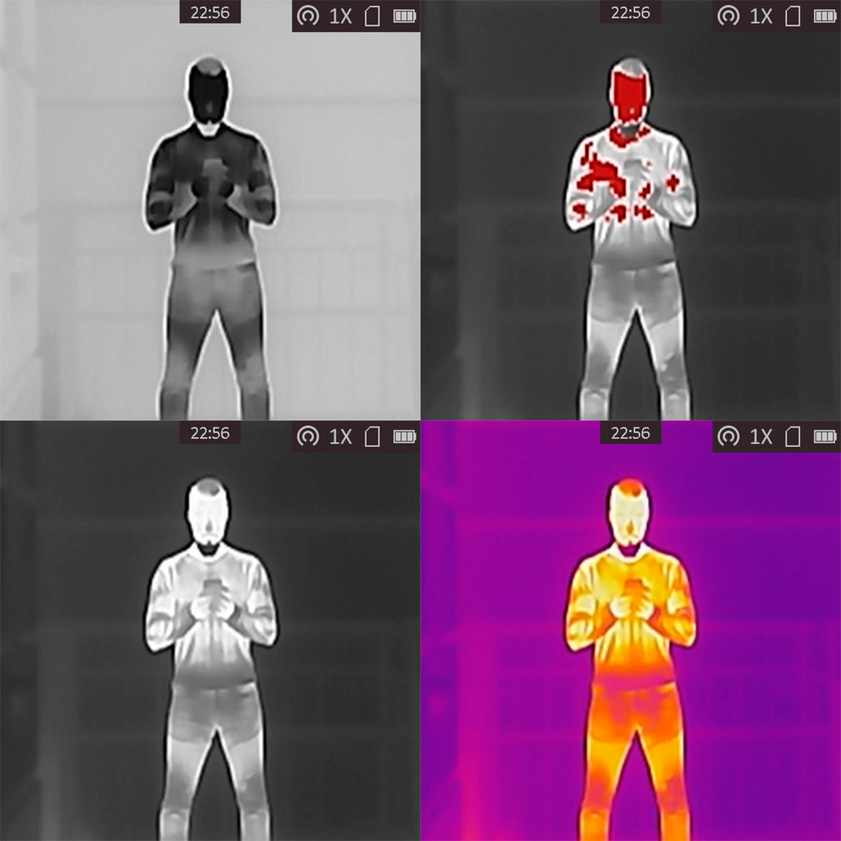 - Четыре цветовые палитры: Black Hot, White Hot, Red Hot, Fusion