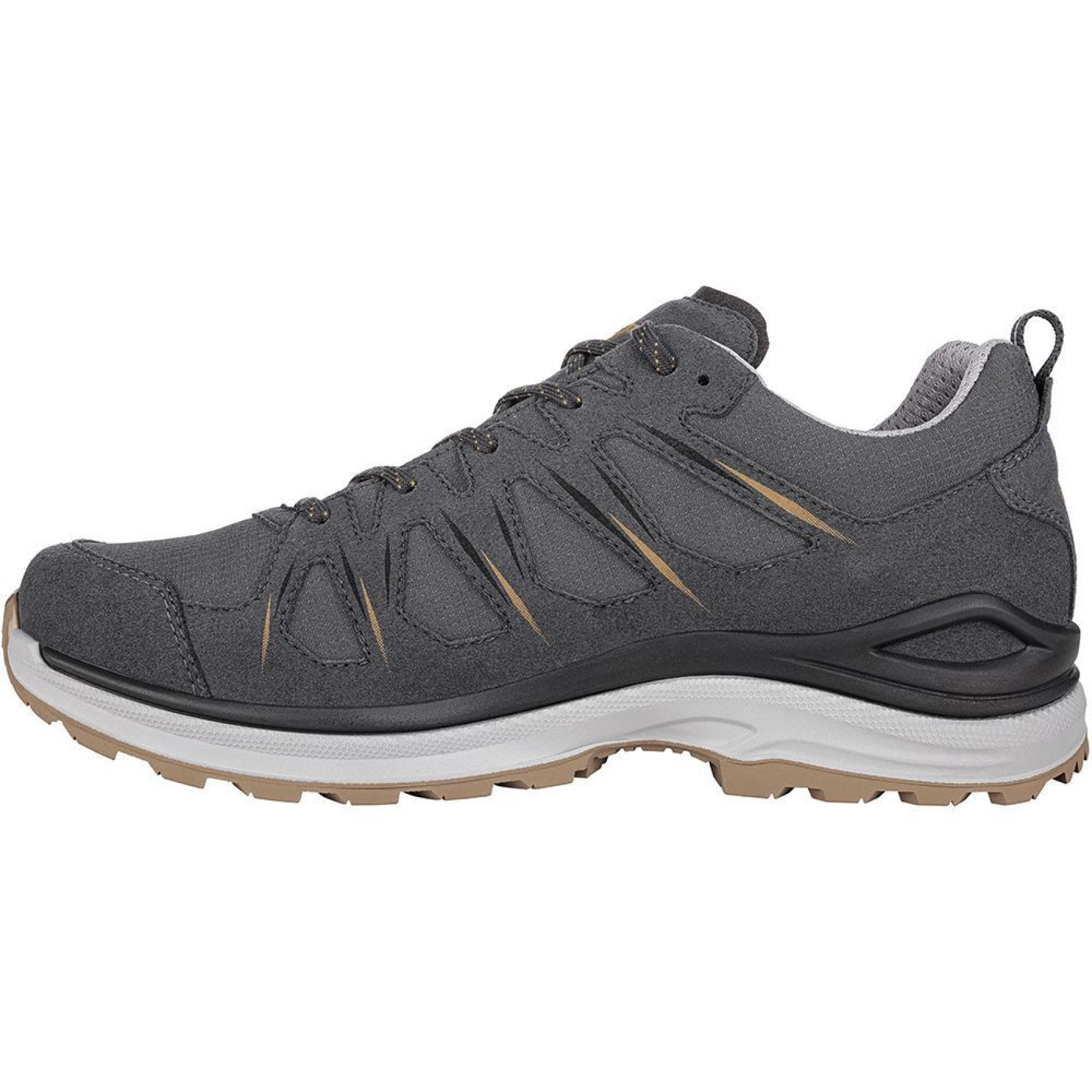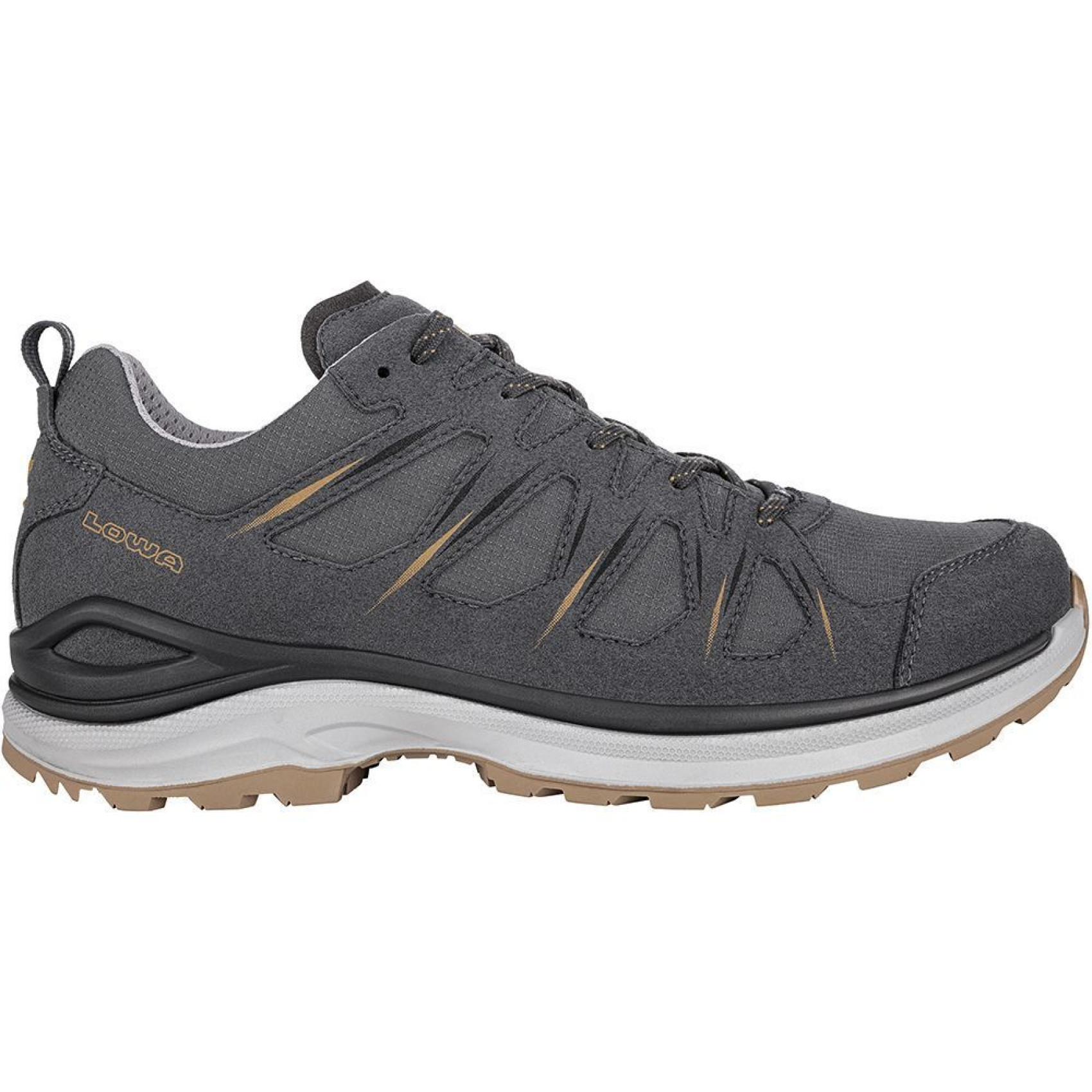 Кроссовки LOWA Innox Evo II GTX Чёрный – многофункциональные лёгкие мужские кроссовки, идеально подходят для пеших прогулок по пересечённой местности и активного отдыха на природе. Верх выполнен из комбинации прочного синтетического и натурального материала, а также волокон микрофибры. Мембрана Gore-Tex® защищает от влаги и обеспечивает воздухопроницаемость. Промежуточная подошва LOWA DynaPU® анатомической формы и скошенный край пятки обеспечивают оптимальную амортизацию и стабильность. Каркас LOWA MONOWRAP® с трёхмерной конструкцией комфортно обхватывает стопу и поддерживает её на неровных поверхностях. Дополнительную поддержку обеспечивает слегка приподнятая конструкция SUPPORT FRAME. Самоочищающаяся подошва LOWA® ENDURO EVO II с остроугольным протектором обеспечивает высокое сцепление при нескладных походах.