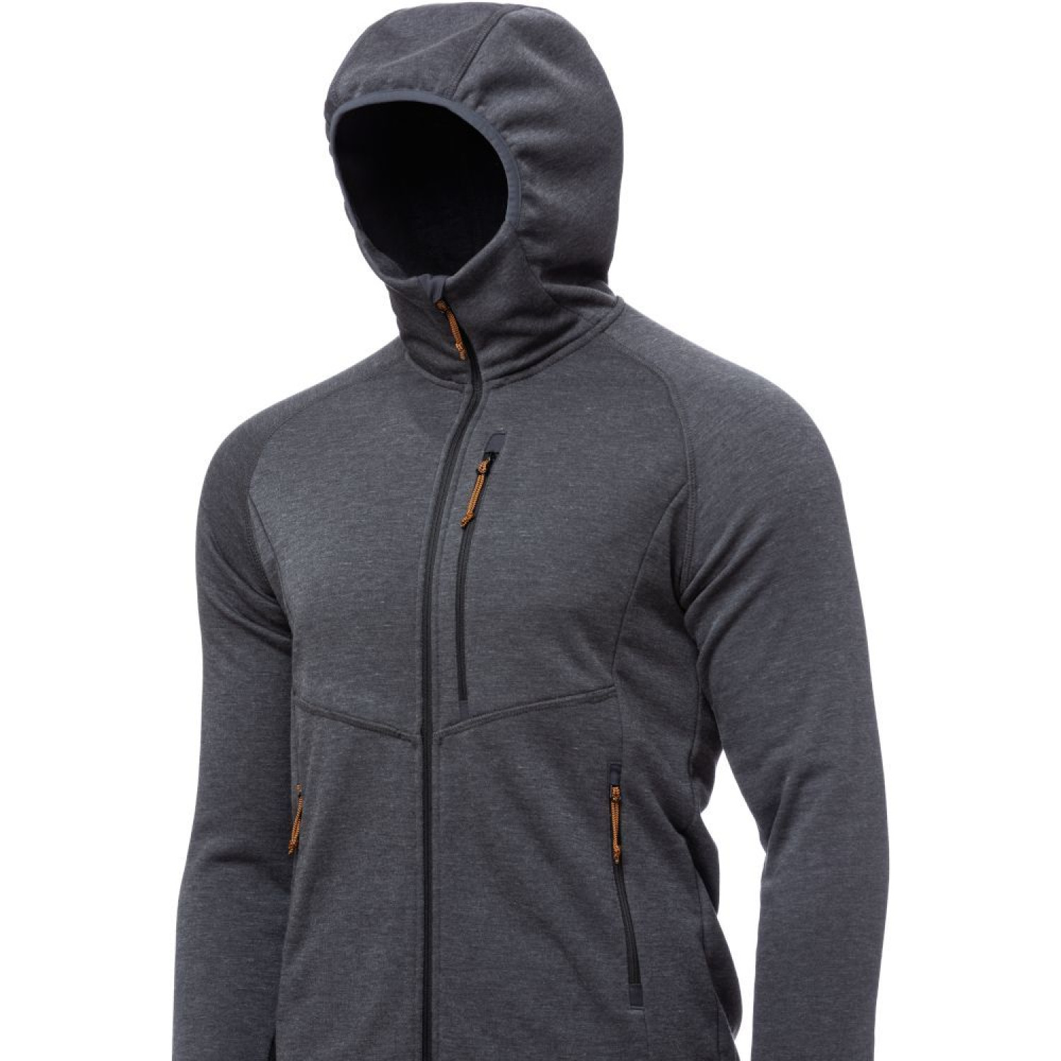 Изготовлен из прочного, эластичного и приятного к телу материала Polartec(R) Thermal Pro(R). Имеет удлиненные рукава с отверстиями для пальцев и эргономичный капюшон. Для мелких вещей есть один большой карман на груди и два кармана для рук. Флис сочетает в себе технологичный материал, функциональный приталенный крой и одновременно дизайн и тактильный комфорт городского худи.