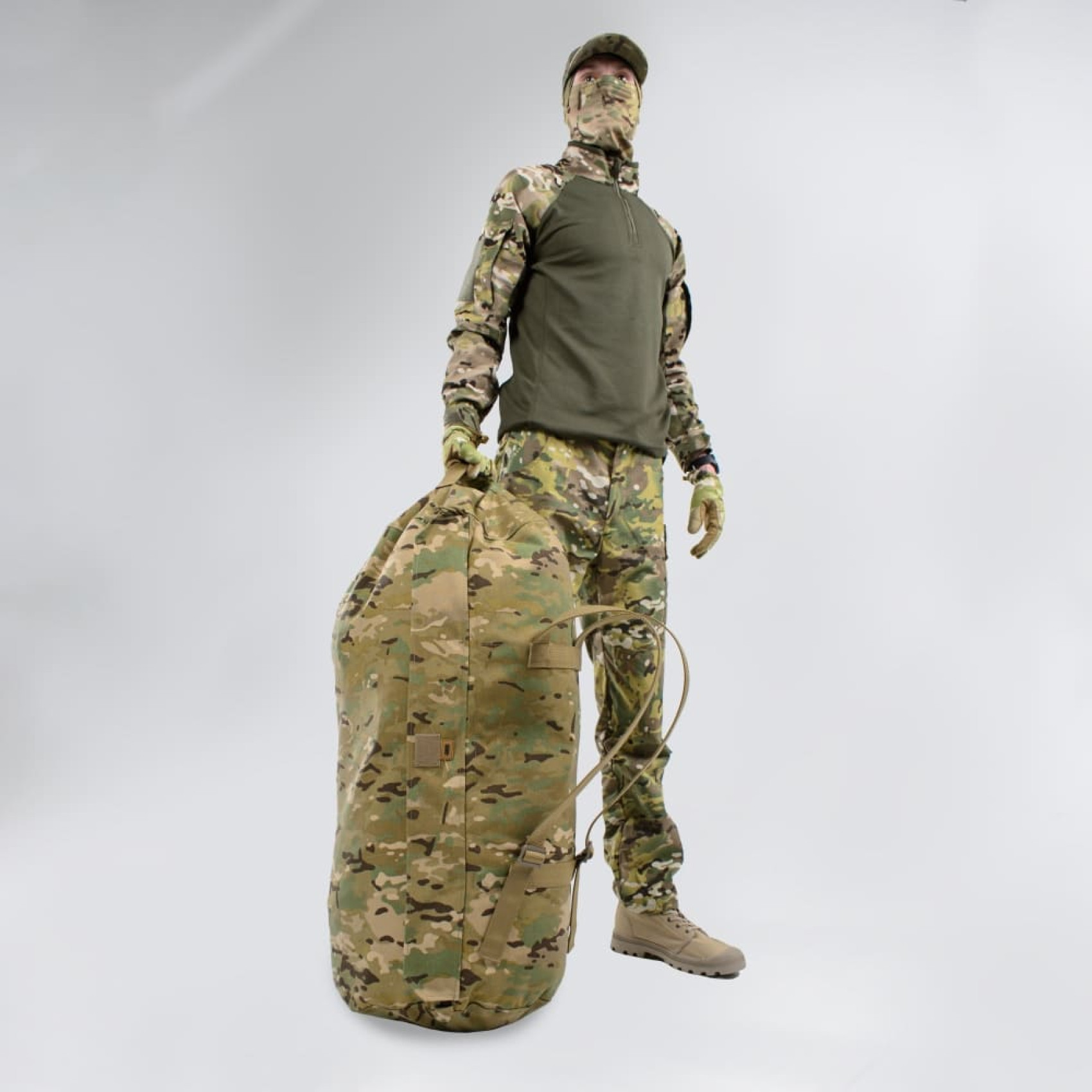 Баул / транспортна сумка DEFua 100л Мультикам з бічним завантаженням є зручною транспортною сумкою, що має застібку-блискавку та клапан з липучкою для додаткового захисту від води та бруду.