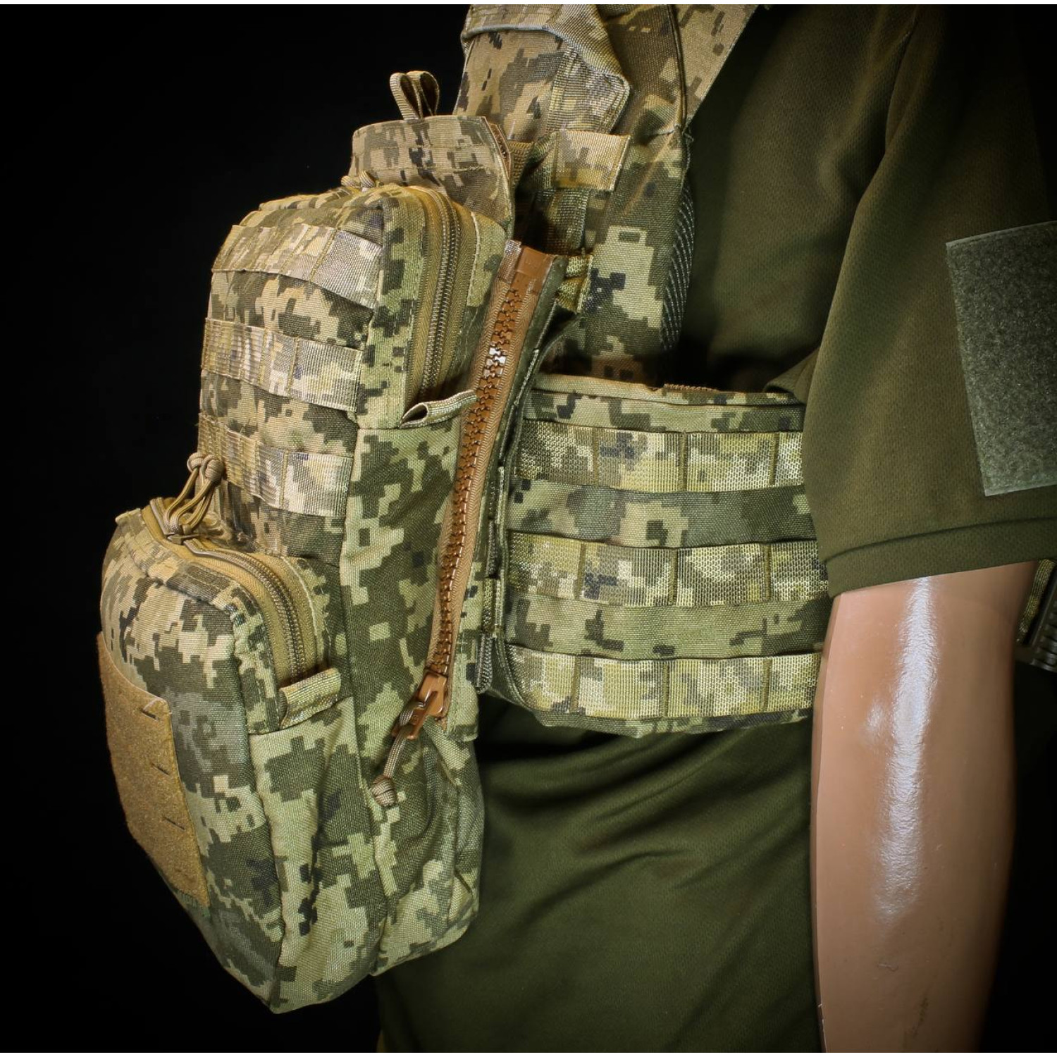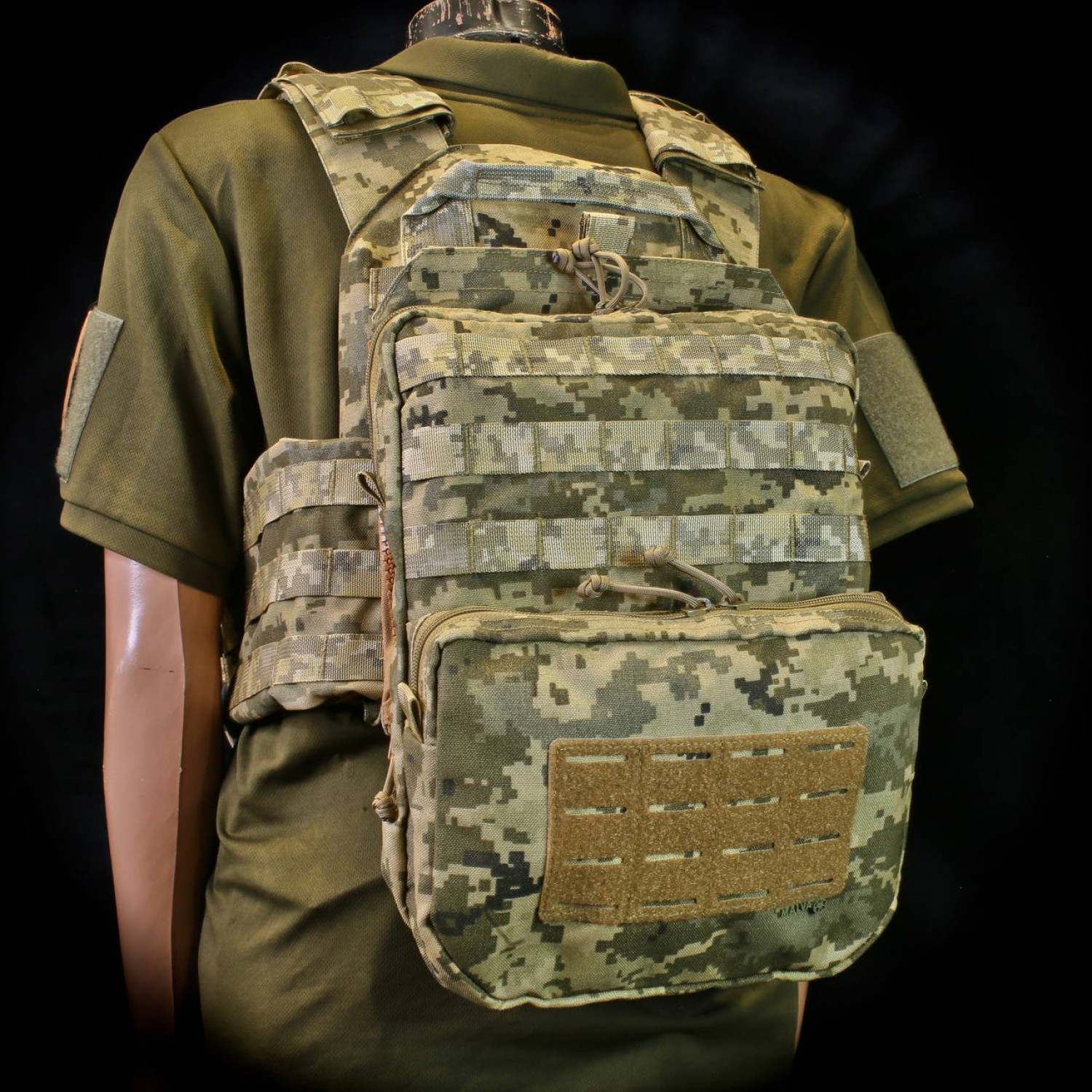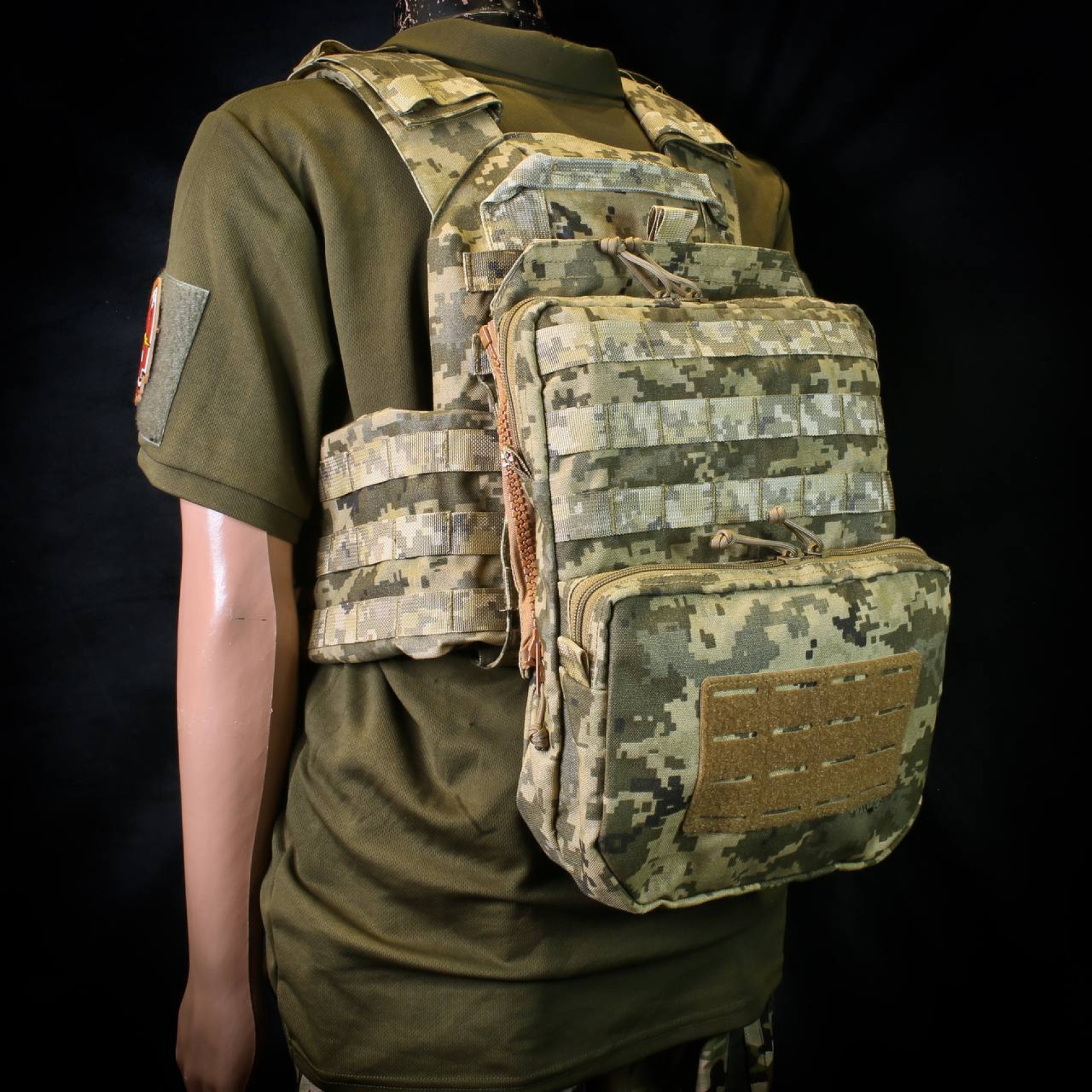 - Панель кріпиться до будь яких плитоносок що мають Molle на спині, за рахунок адаптерів з блискавками.