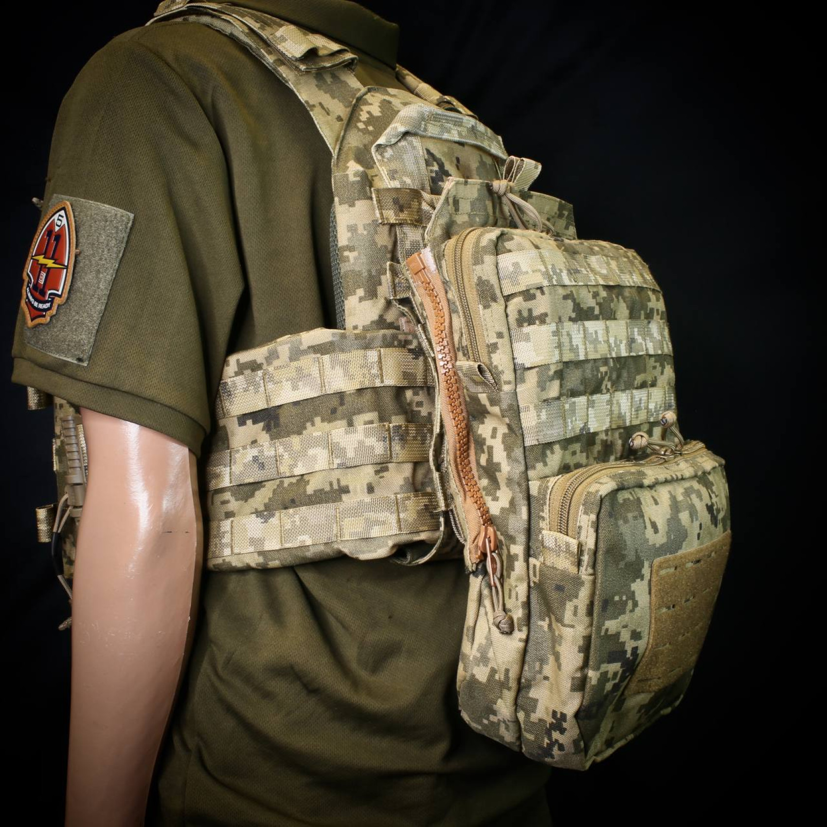 - Штурмова панель на плитоноску має 4 відділення: 2 у меншому, 1 велике та відділення під гідратор.