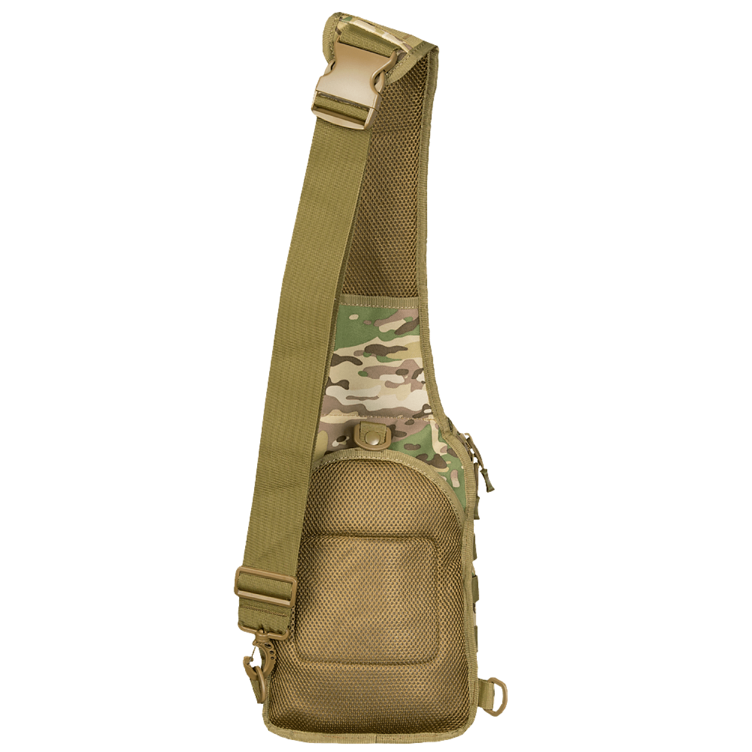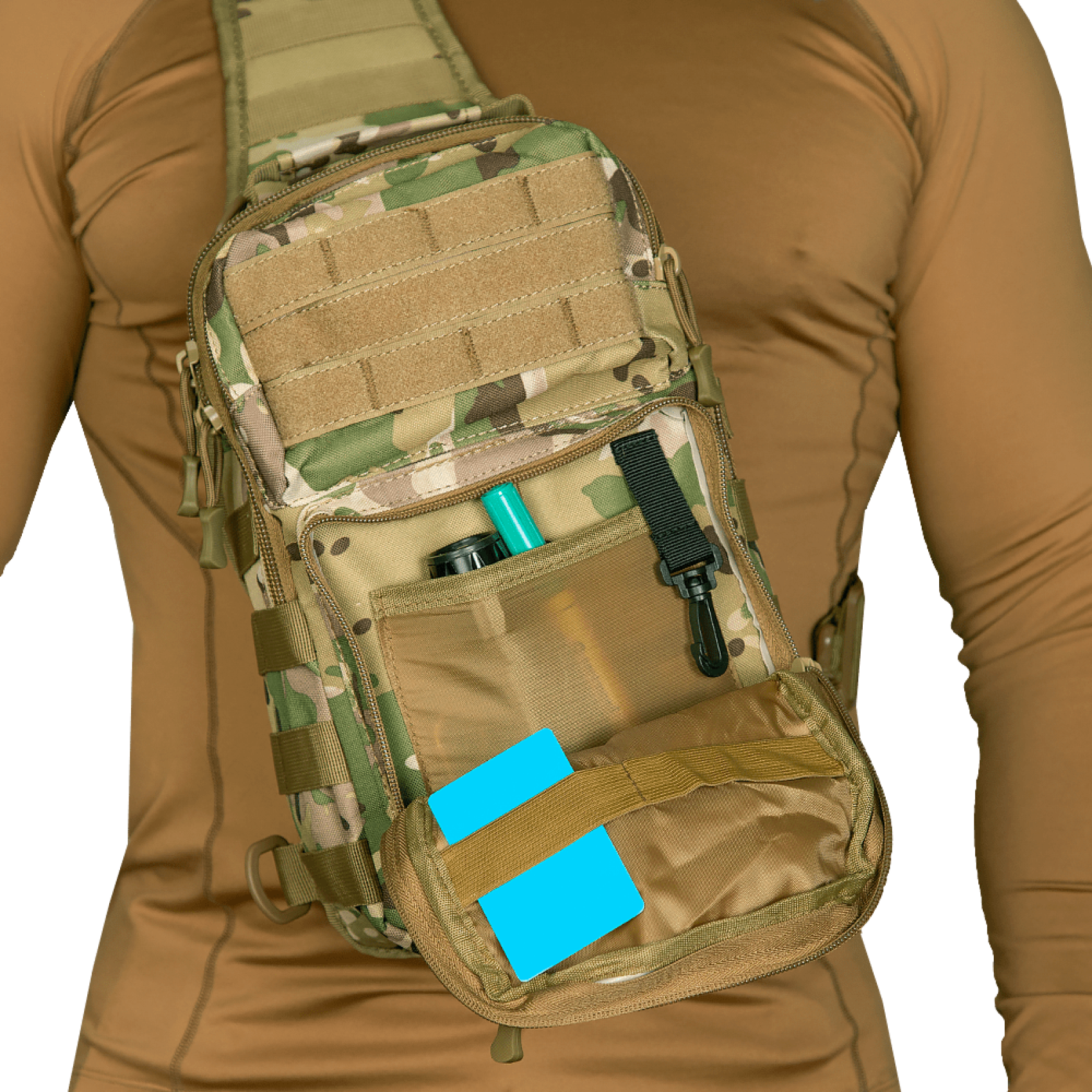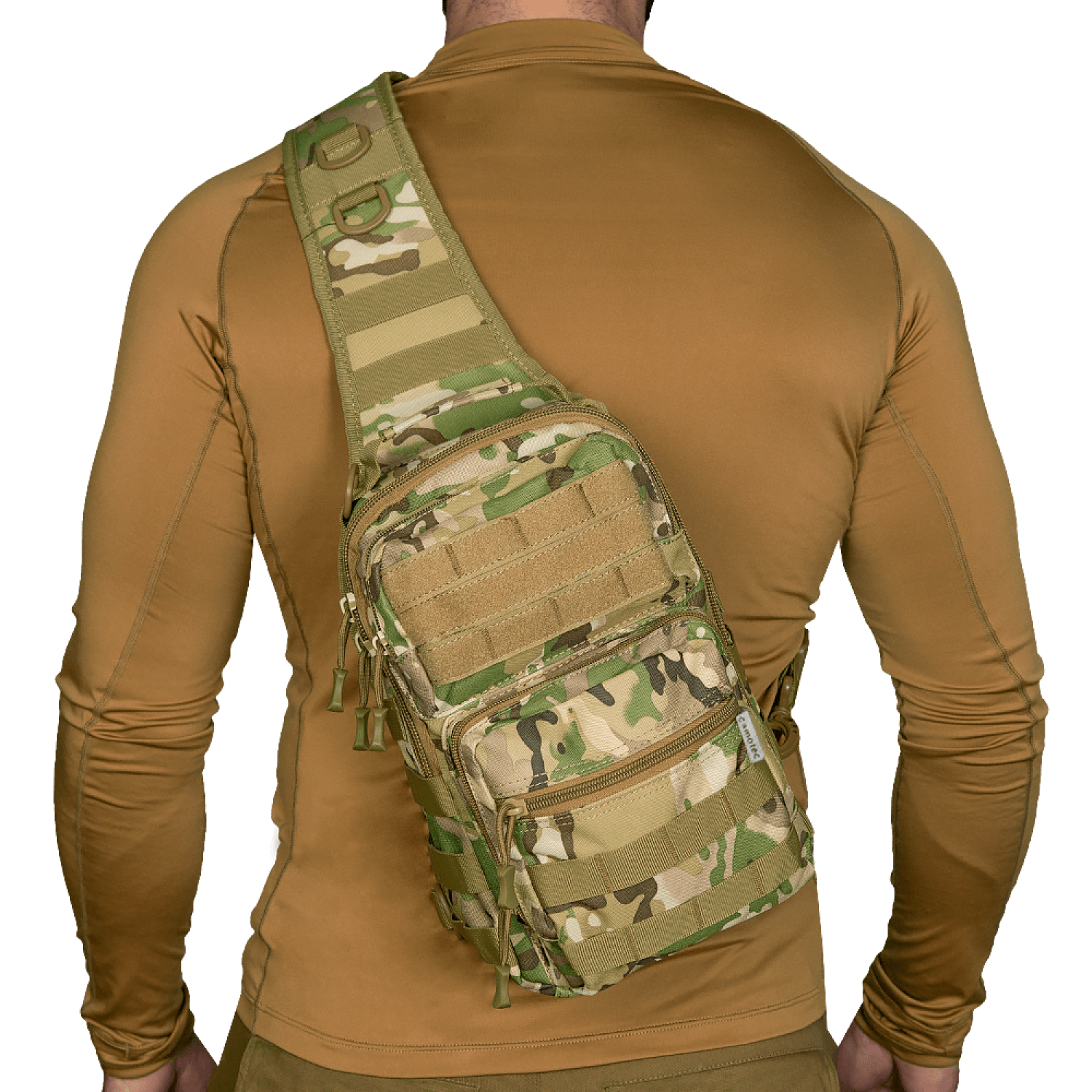 Сумка Camotec COB Sling Мультикам (City Ops Bag - Міська, тактична сумка) являє собою компактний, універсальний аксесуар. Цей функціональний елемент підходить як для повсякденного використання, так і для охоронних або військових завдань, туризму, кемпінгу, полювання або риболовлі. Її зручно носити спереду, ззаду, через ліве або праве плече, а також використовувати як звичайну сумку. Оснащена стропами MOLLE, що дають змогу кріпити додаткове спорядження або підсумки.