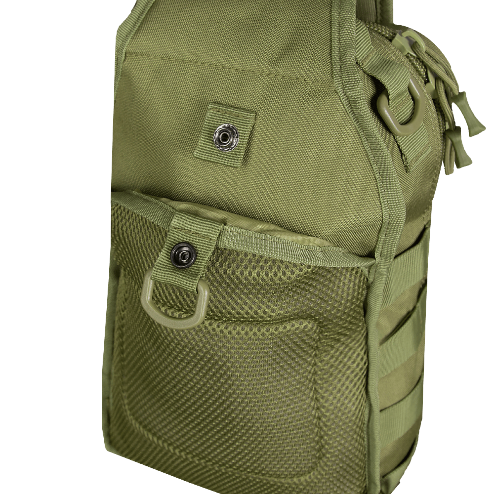 Сумка Camotec COB Sling Олива (City Ops Bag - Міська, тактична сумка) являє собою компактний, універсальний аксесуар. Цей функціональний елемент підходить як для повсякденного використання, так і для охоронних або військових завдань, туризму, кемпінгу, полювання або риболовлі. Її зручно носити спереду, ззаду, через ліве або праве плече, а також використовувати як звичайну сумку. Оснащена стропами MOLLE, що дають змогу кріпити додаткове спорядження або підсумки.