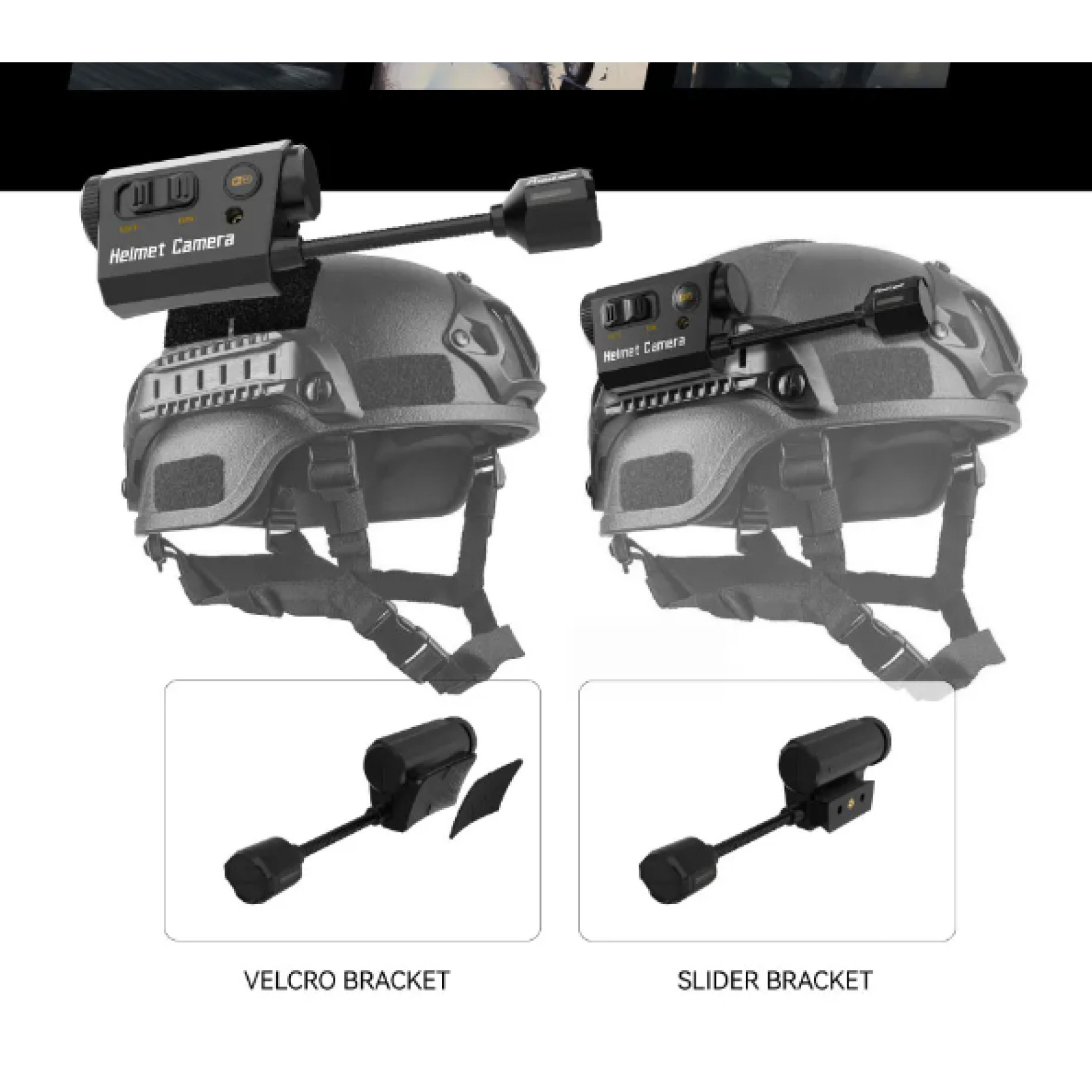 Екшн-камера на тактичний шолом RunCam обладнана спеціально розробленими кріпленнями-слайдерами та липкою стрічкою, придатними для різних моделей шоломів.