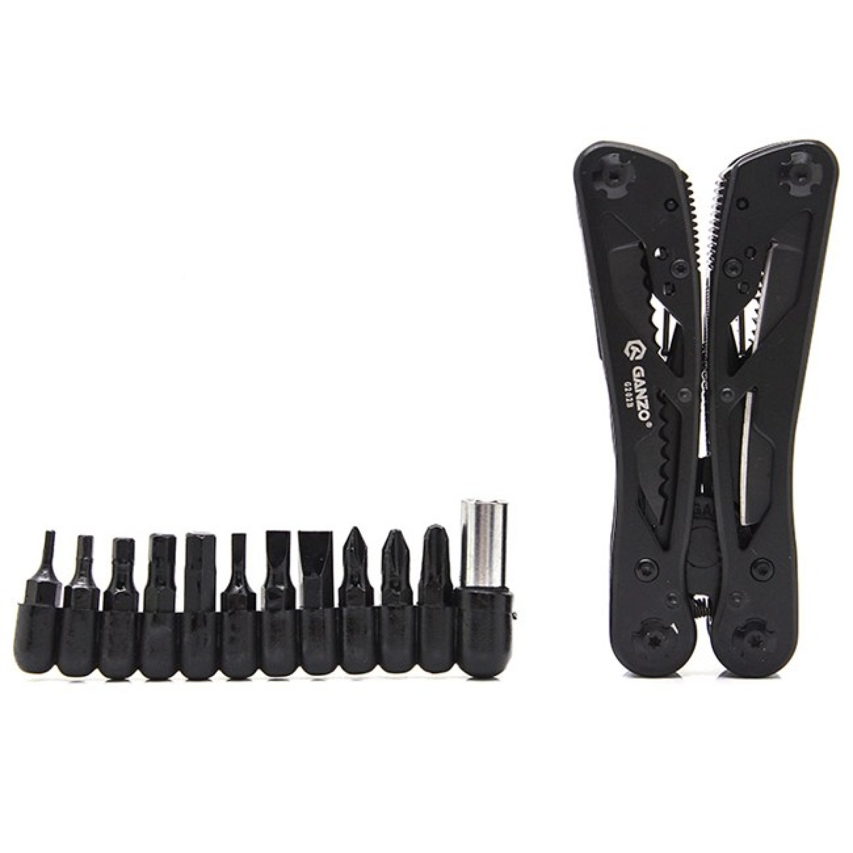 Мультитулом Ganzo G202 Чорний можна виконувати найрізноманітніші завдання. 12 змінних насадок підходять практично для всіх типів гвинтів і гайок, які можуть знадобитися. А за допомогою ножиць і ножів, при необхідності, можна розрізати навіть дуже щільні матеріали.