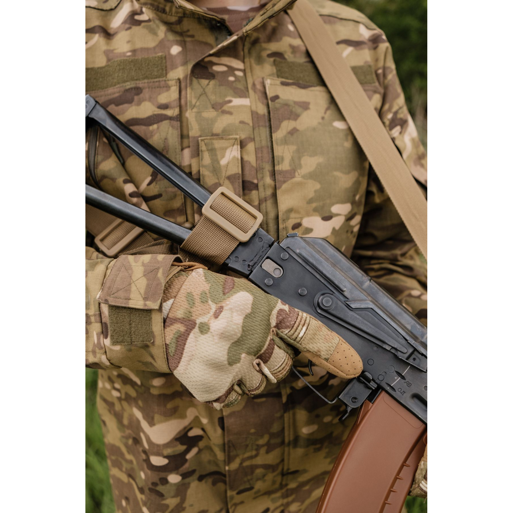 Ремінь 2-точковий Kiborg Gun Sling G-2 з пряжкою швидкого регулювання Triple-X Койот - це надійний та зручний 2-точковий ремінь зі спеціальною Triple-X пряжкою для швидкого регулювання довжини ременя. Завдяки цій пряжці яка легко "ходить" по стропі, оператор може швидко переводити зброю у бойове положення та регулювати довжину ременя за потреби для комфортного перенесення зброї. На пряжці присутнє додаткове кільце зі стропи для більш зручного використання, яке за потреби можна від'єднати.