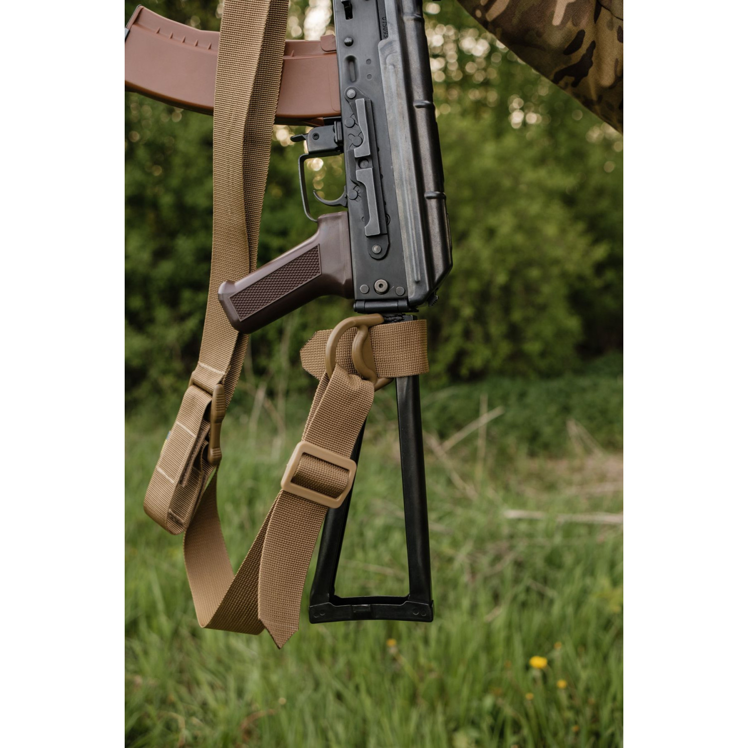 Ремінь має по 2 варіанти кріплеплення до зброї які ідуть у комплекті