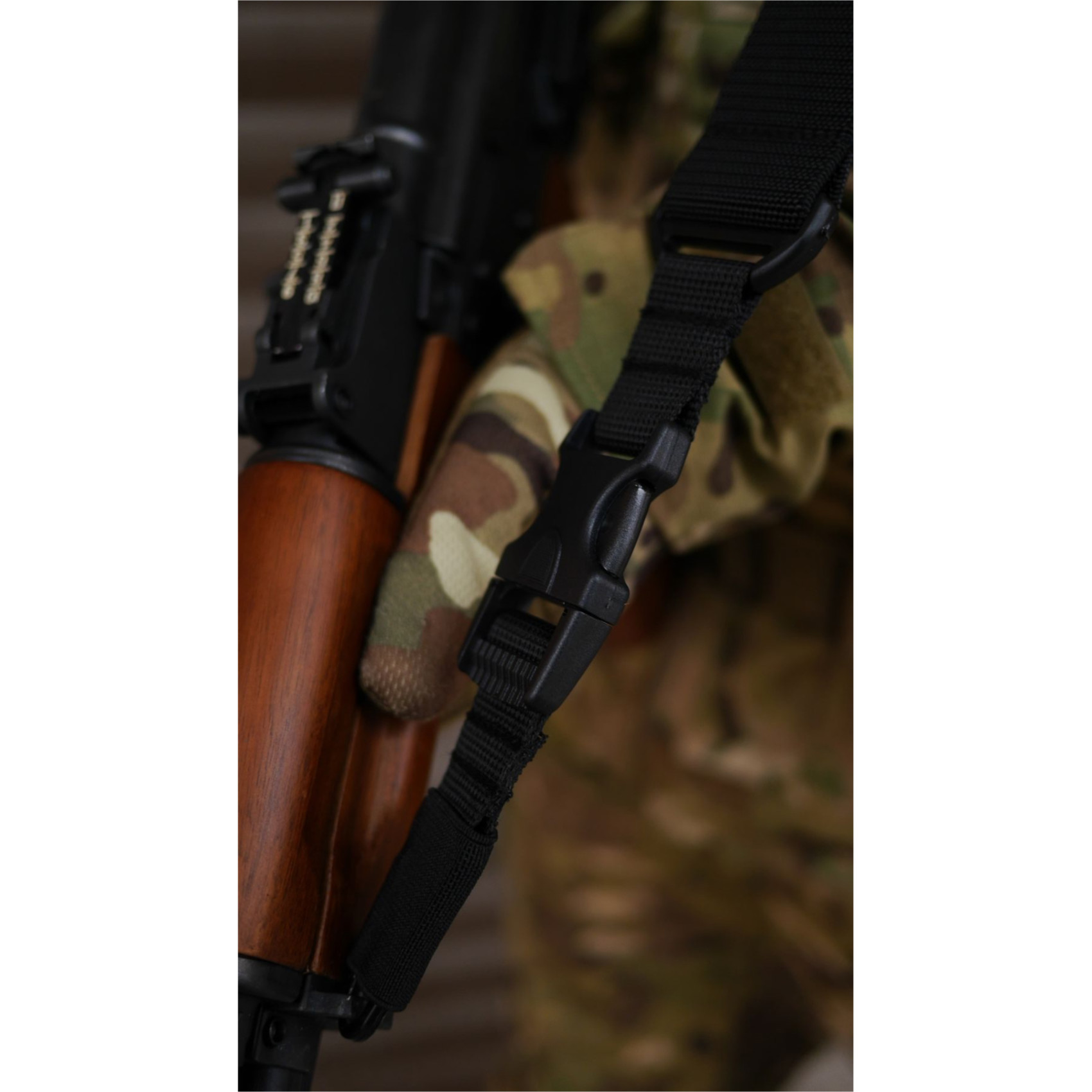 - Ремінь 3-х точковий для АК, РПК Чорний має фурнітуру зі 100% Поліаміду. Вогнетривка і максимально надійна у використанні.