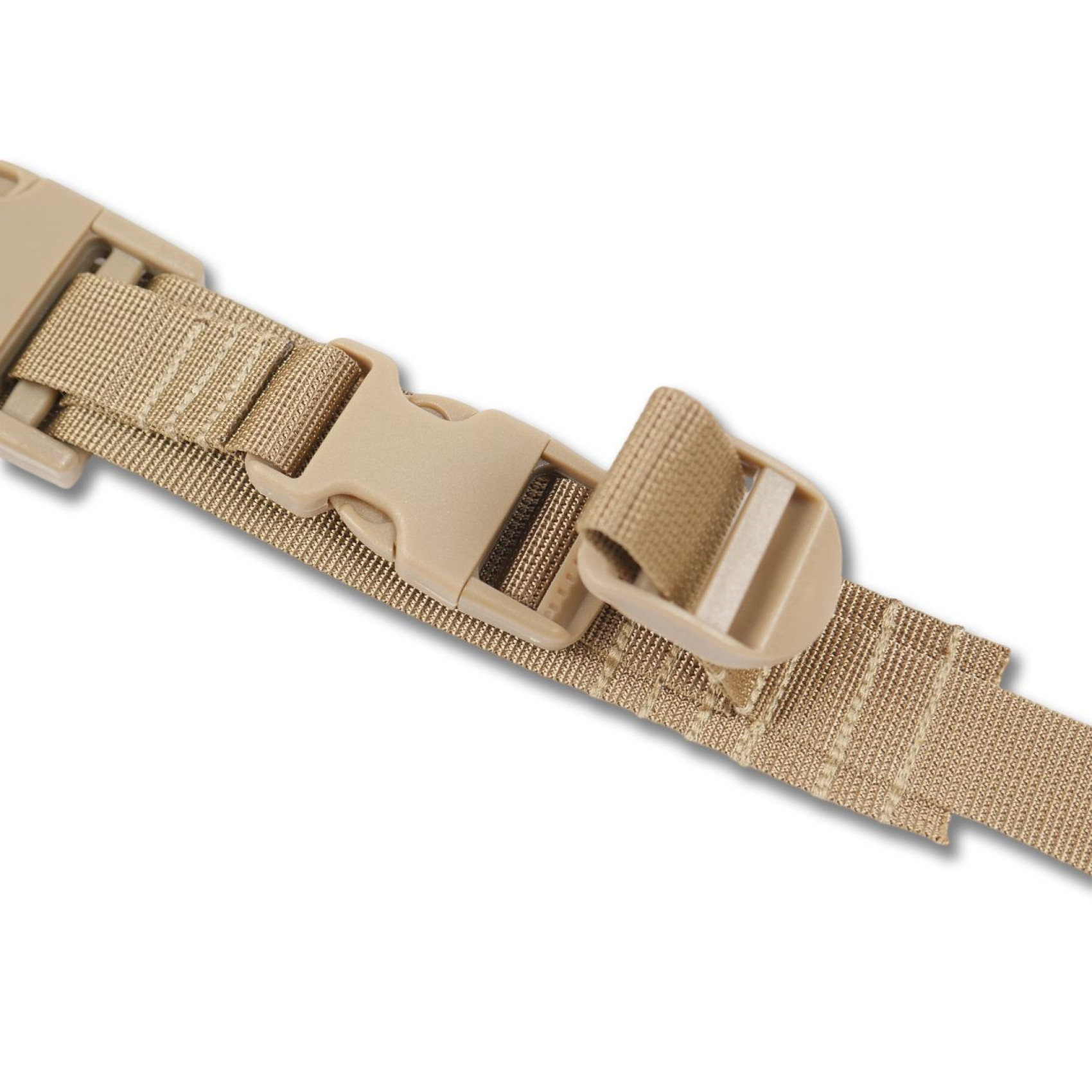- Кріплення ременя до зброї здійснюється за допомогою перетяжок, що, на відміну від металевих карабінів, унеможливлюють демаскуючий брязкіт і дзвін.