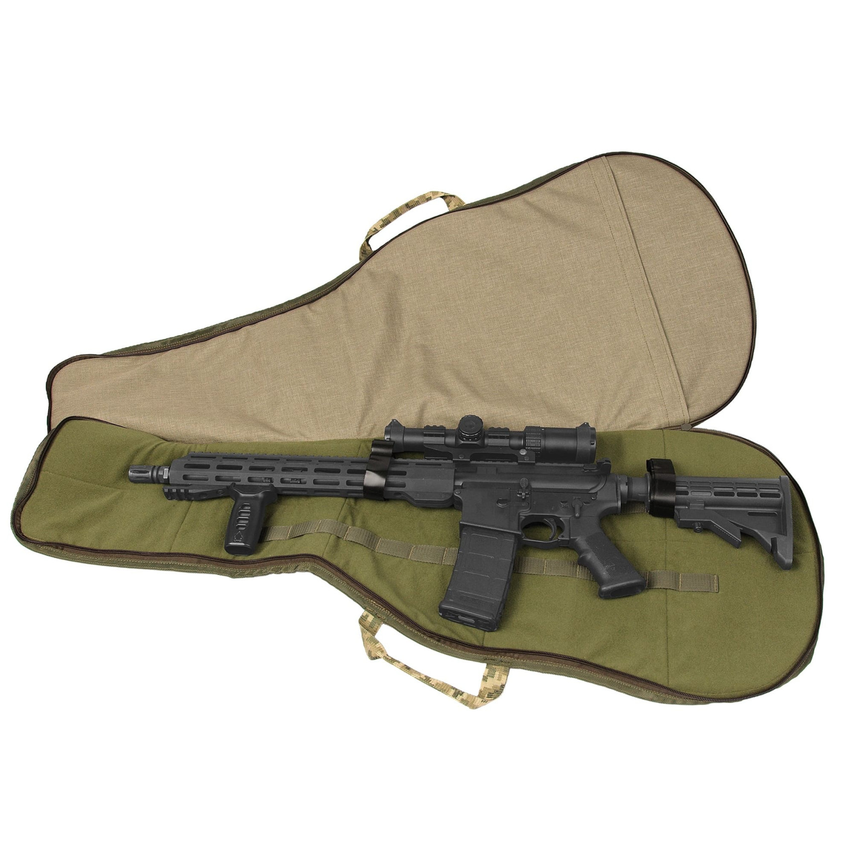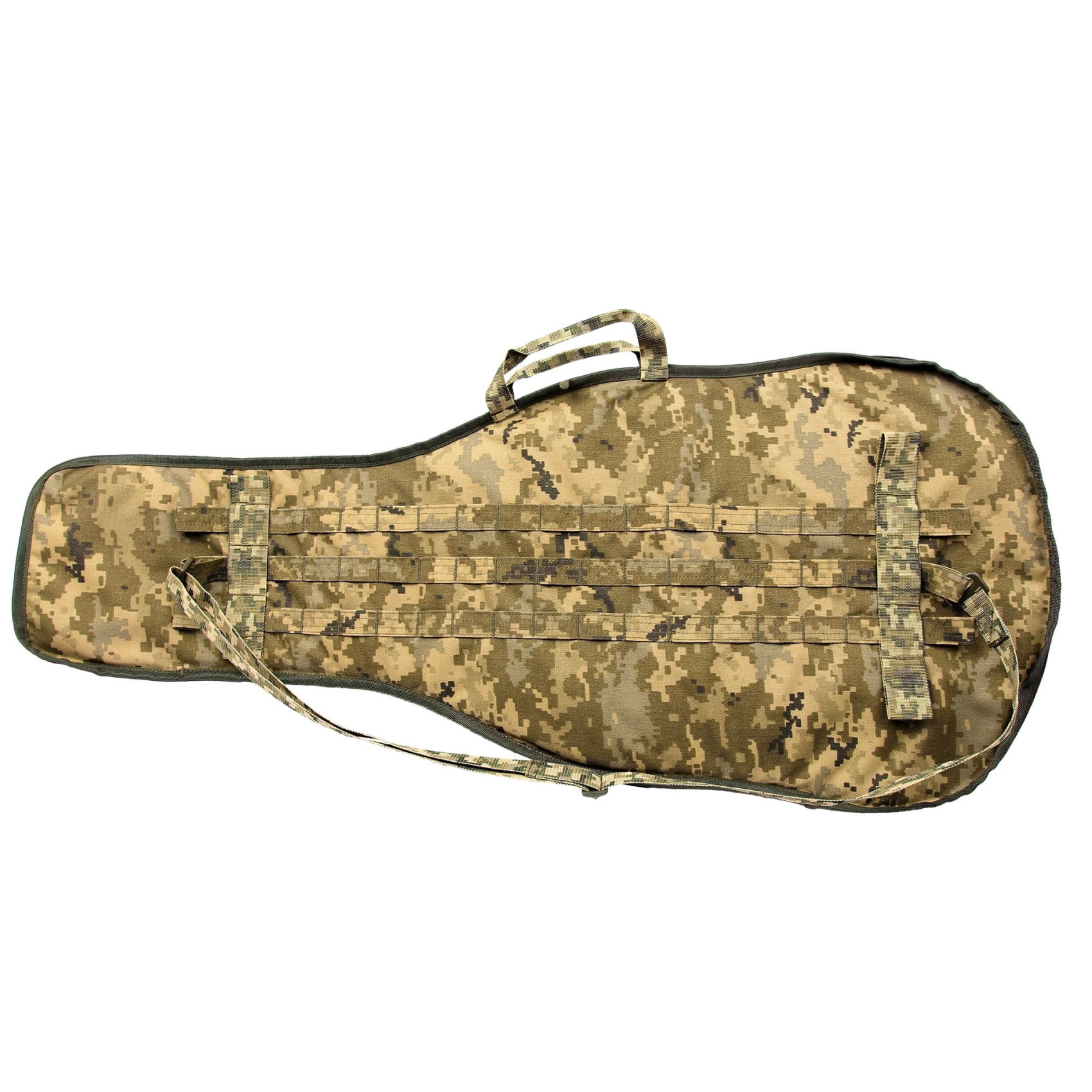 Зовні виконана в формі чохла для гітари та підійде для трансфортування найбільш поширених моделей музичних інструментів, що дозволяє транспортувати вашу зброю не привертаючи зайвої уваги.