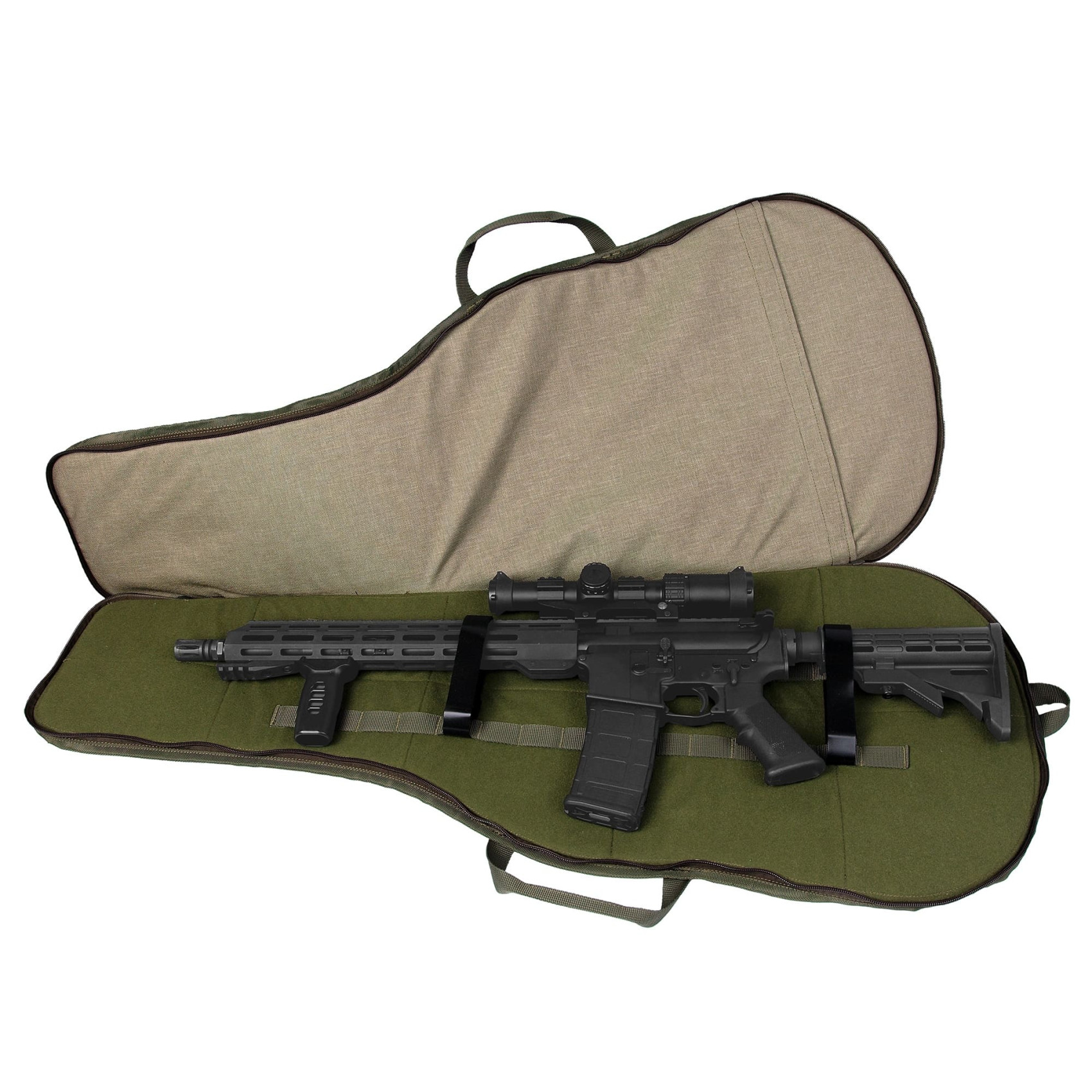 Зовні виконана в формі чохла для гітари та підійде для трансфортування найбільш поширених моделей музичних інструментів, що дозволяє транспортувати вашу зброю не привертаючи зайвої уваги.