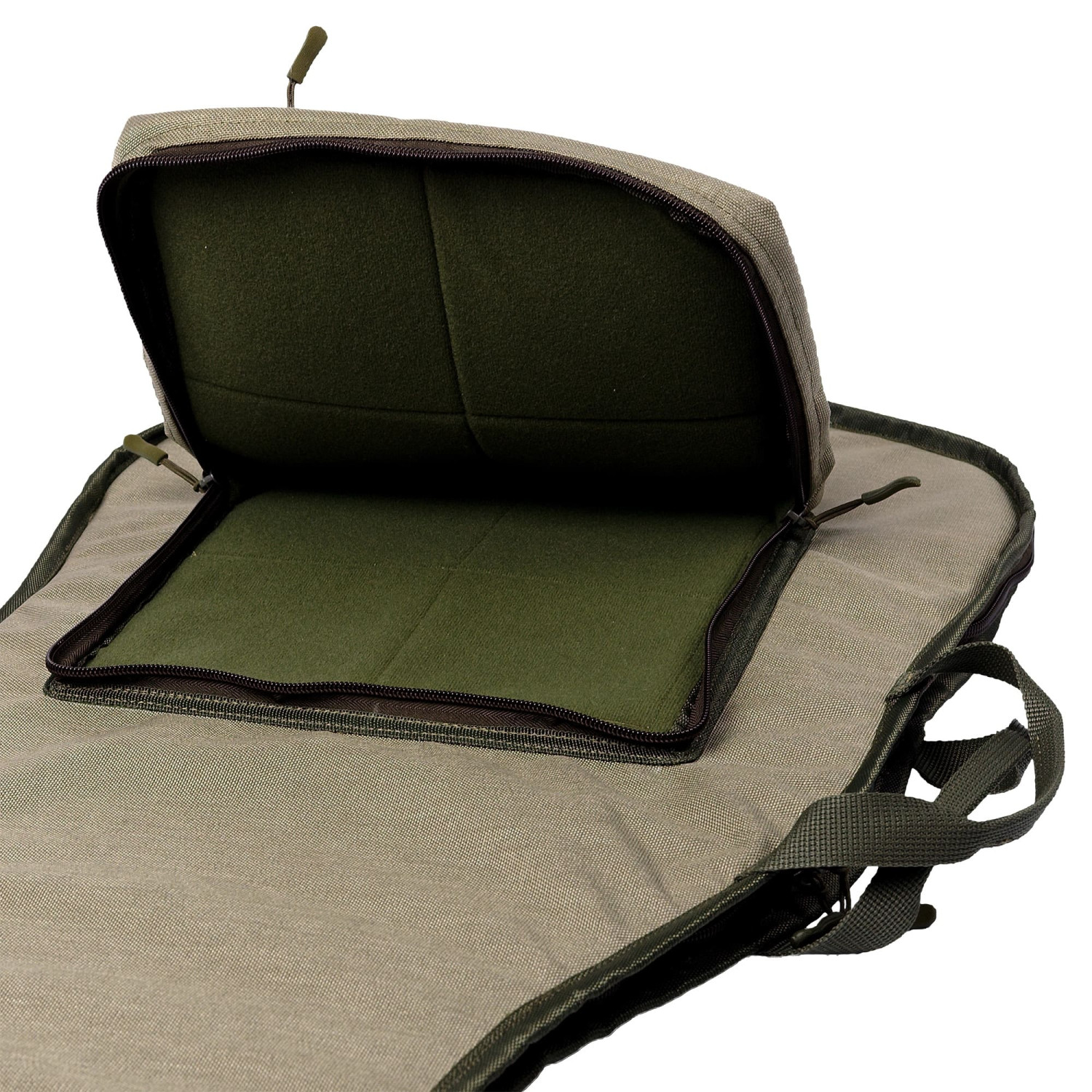 Внутрішня частина сумки обладнана м’якою піною та жорстким каркасом, які захищають гвинтівку від ударів і забезпечують стабільність під час транспортування. Велкро інтерфейс та направляючи зі строп гарантують надійну 100% фіксацію зброї.
