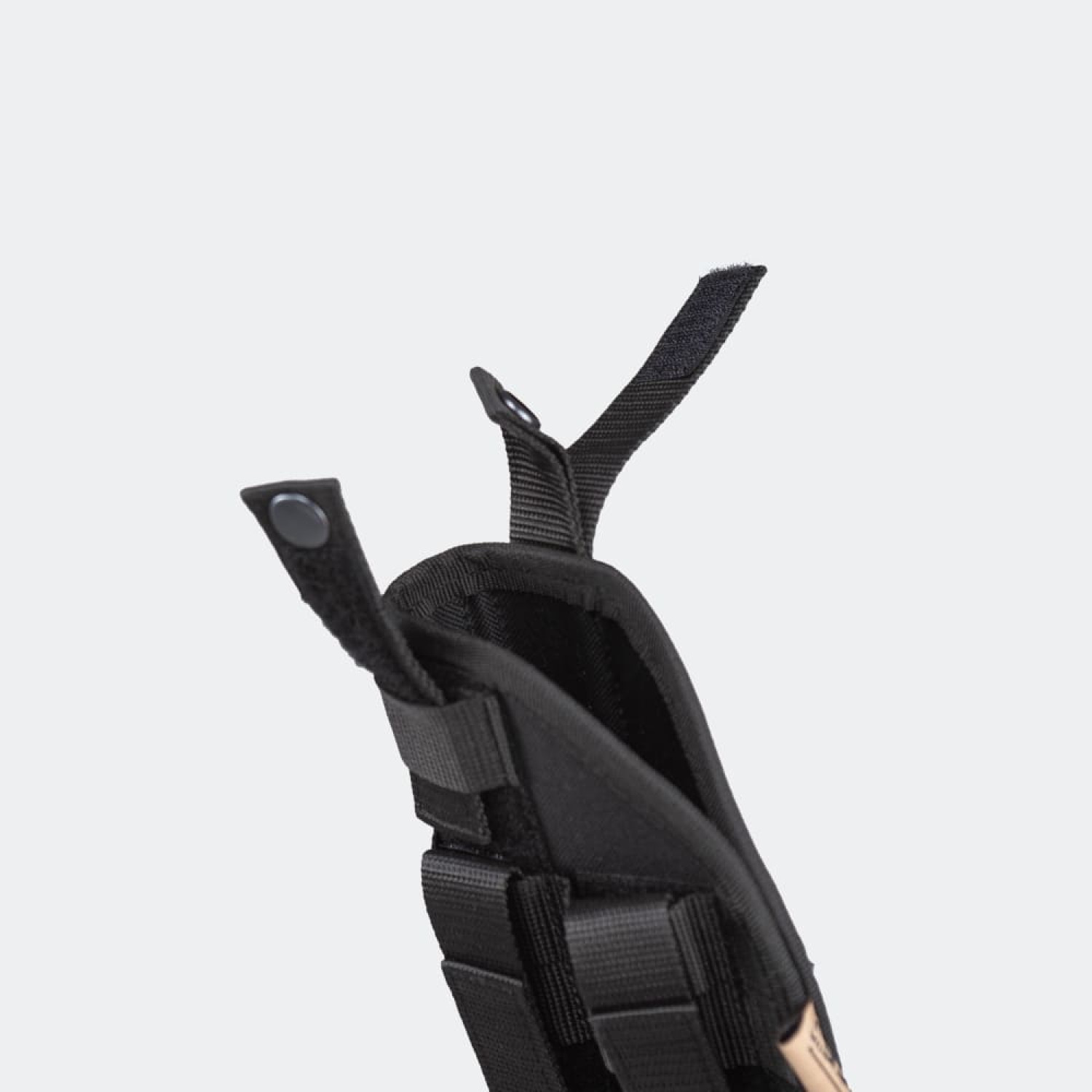 Кріплення MOLLE є амбідекстерними, та можуть бути демонтовані і встановлені дзеркально, що дозволяє використовувати цю кобуру як шульзі, так і правші.