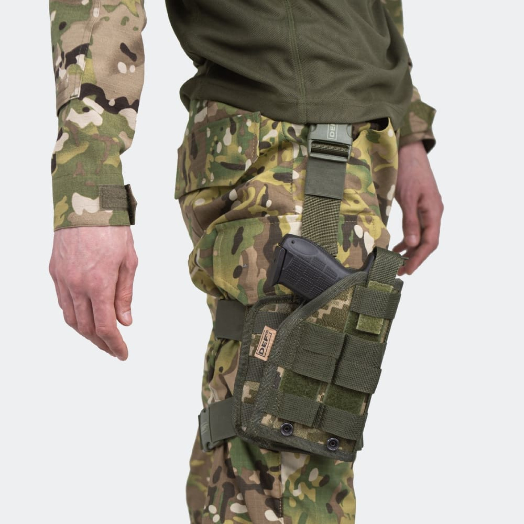 Універсальна пістолетна кобура DEFua Mark II ММ-14 Піксель розроблена на основі популярної моделі від Defcon 5 з рядом технічних напрацювань, що збільшують зносостійкість при використанні у бойових умовах. Підійде для будь-якої короткоствольної зброї, у тому числі з встановленими ДТК чи глушником.