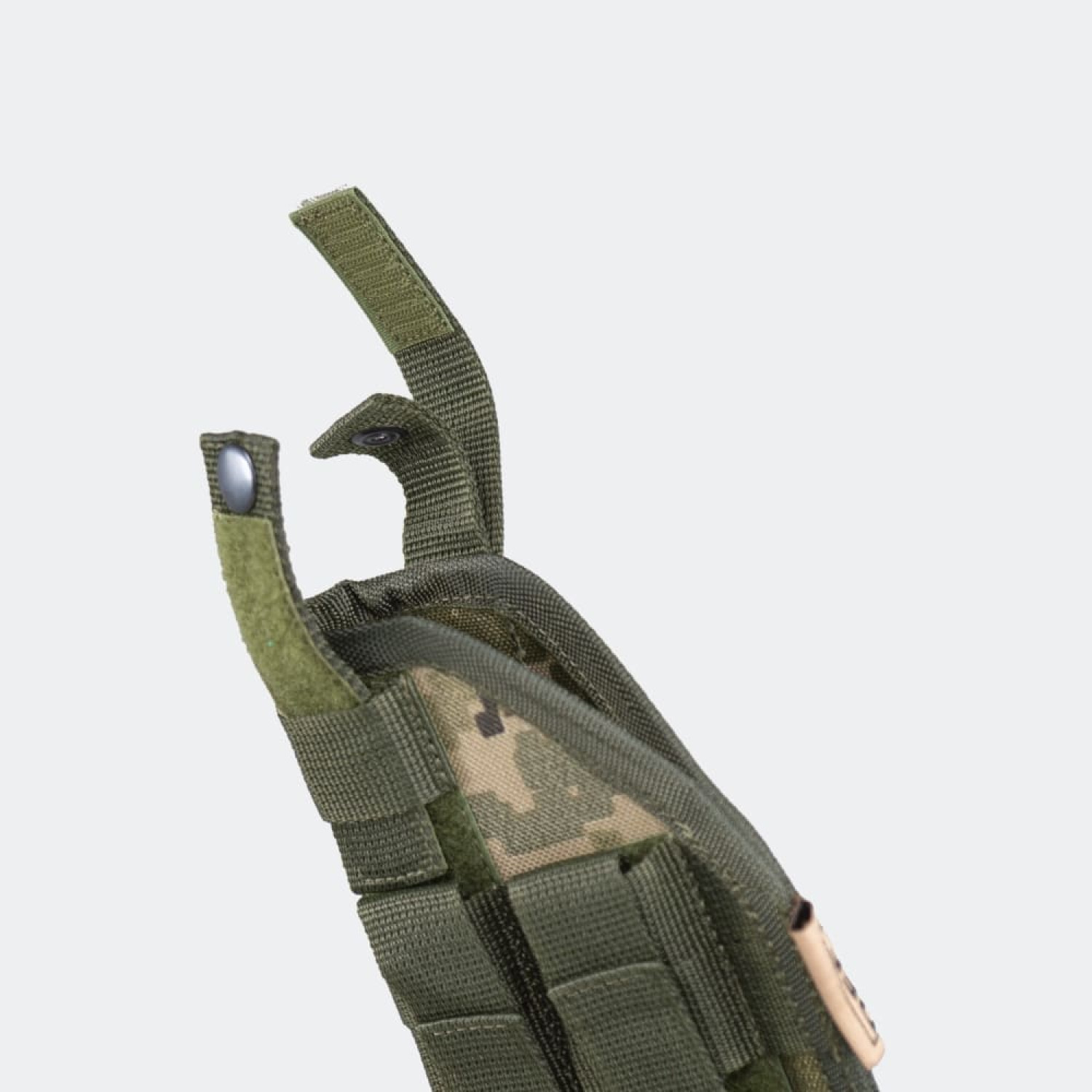 Кріплення MOLLE є амбідекстерними, та можуть бути демонтовані і встановлені дзеркально, що дозволяє використовувати цю кобуру як шульзі, так і правші.