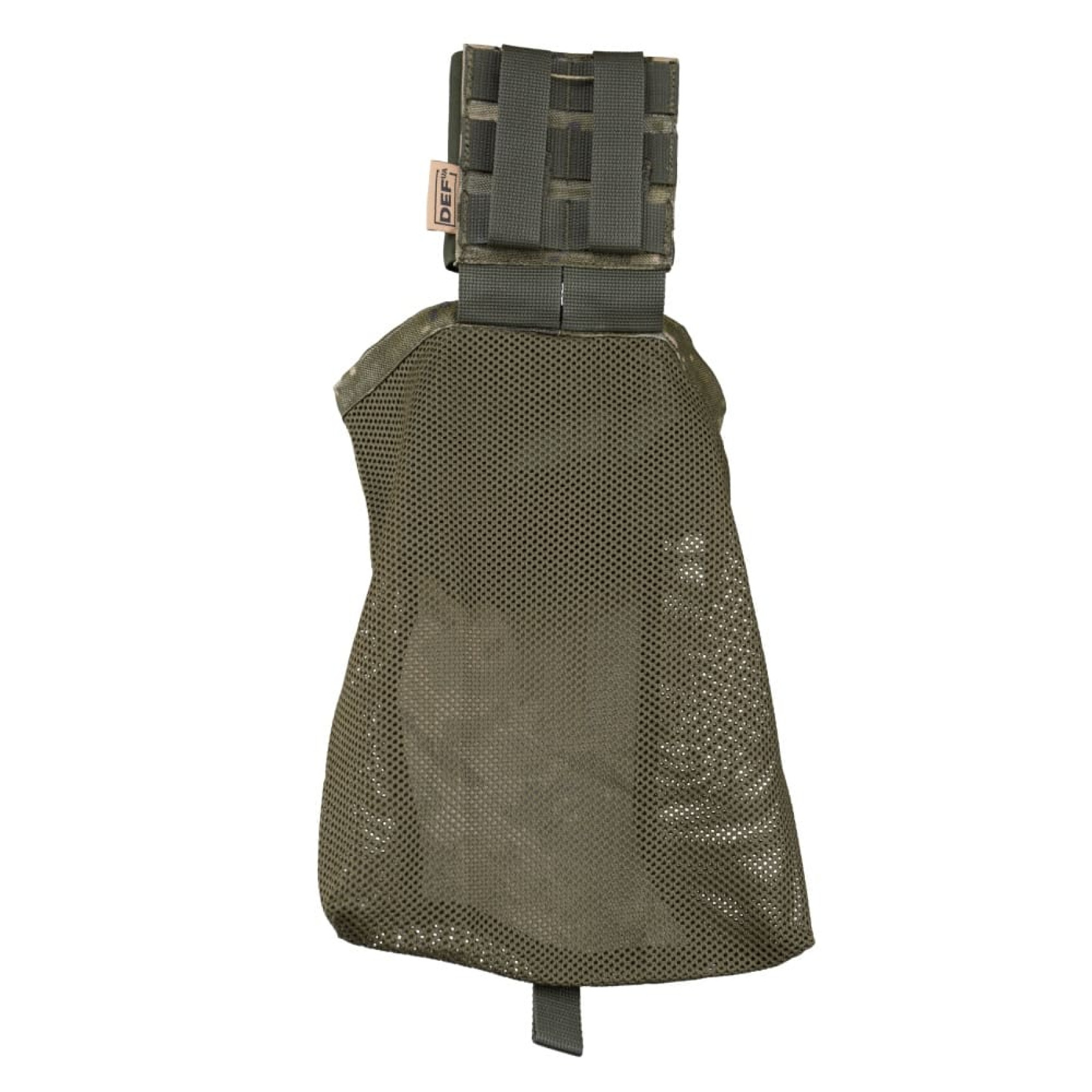 Сумка скидання на платформі DEFua Mark 2 ММ-14 Піксель виконана з тканини Cordura 1000D та жорсткої нейлонової сітки Hard 170. Платформа, до якої кріпиться мішечок-сумка має жорсткий армуючий каркас та резинку, яка фіксує мішечок у складеному положенні. Для зручності використання, дно сумки оснащено висувною ручкою.
