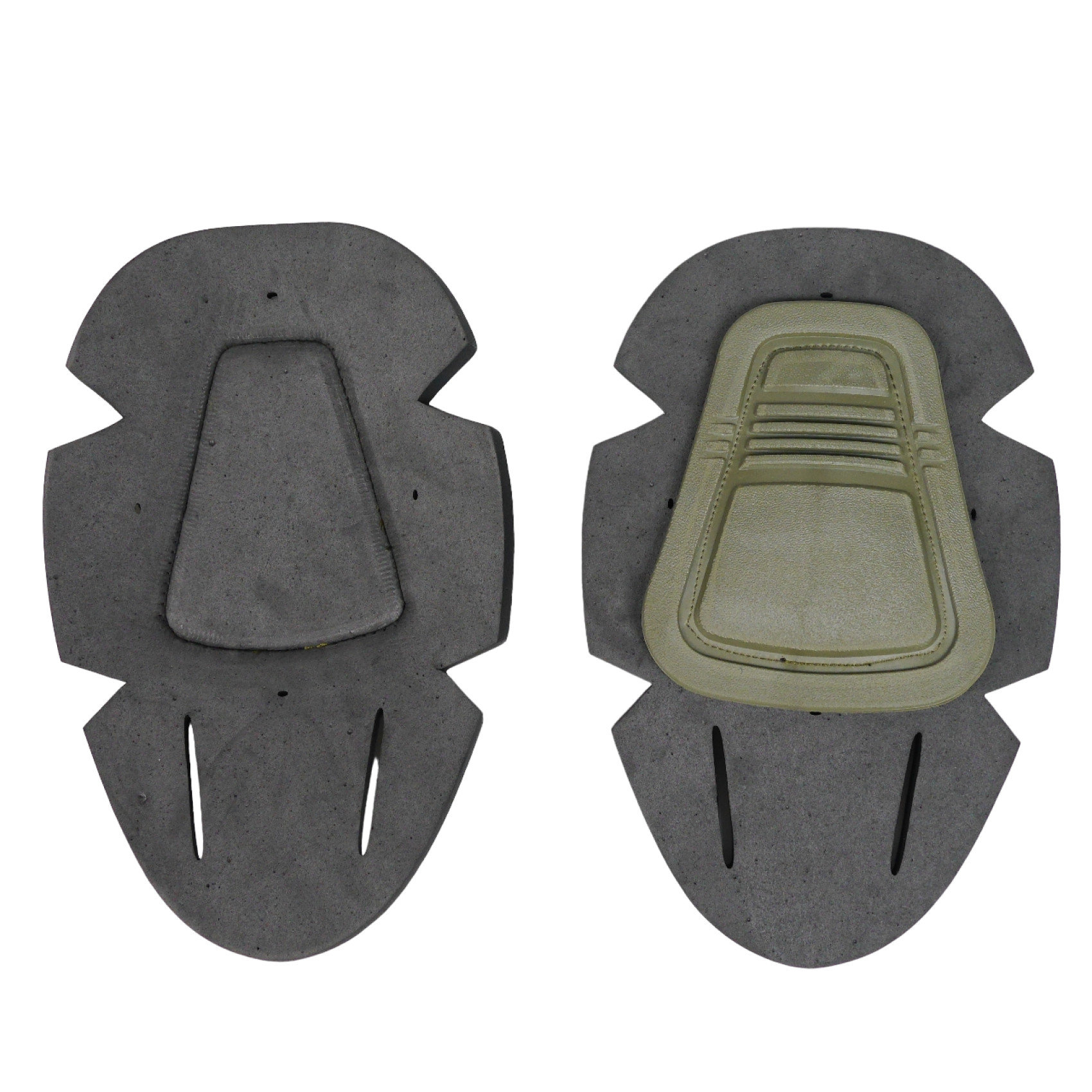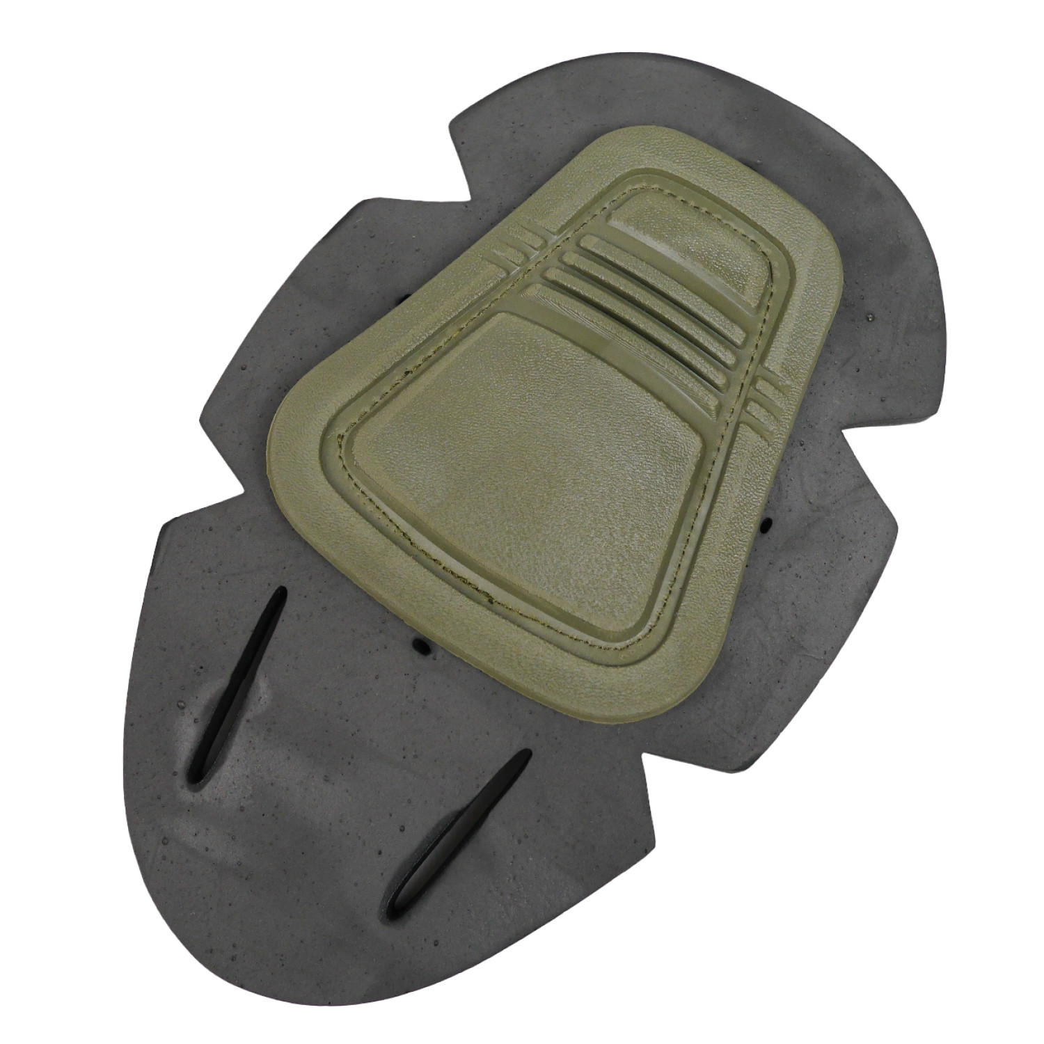 Наколінники вставні Олива для тактичних штанів. Вшивні вставки наколінників виготовлені з інноваційного матеріалу ТЕП, який відрізняється від звичайних пластикових своєю гнучкістю та м'якістю. Це спеціалізовані наколінники, призначені для надійного захисту колін, які легко інтегруються в уніформу. Внутрішня частина наколінника з нейлону має монолітну структуру, що забезпечує комфорт і відсутність дискомфорту навіть за мінімальної товщини підкладки. Рифлена текстура зовнішнього боку наколінника запобігає ковзанню різними поверхнями, зберігаючи матовий вигляд.