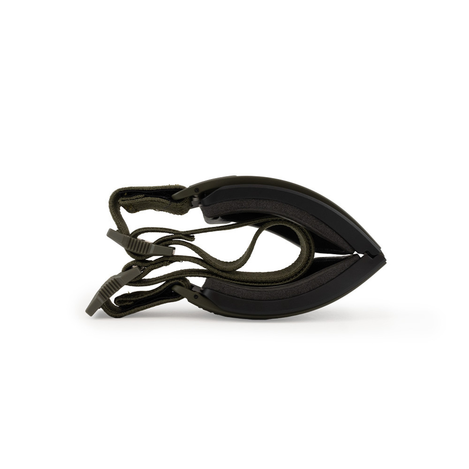 - Напівжорстка матова чорна нейлонова оправа Triloid™ та регульоване еластичне наголов'я