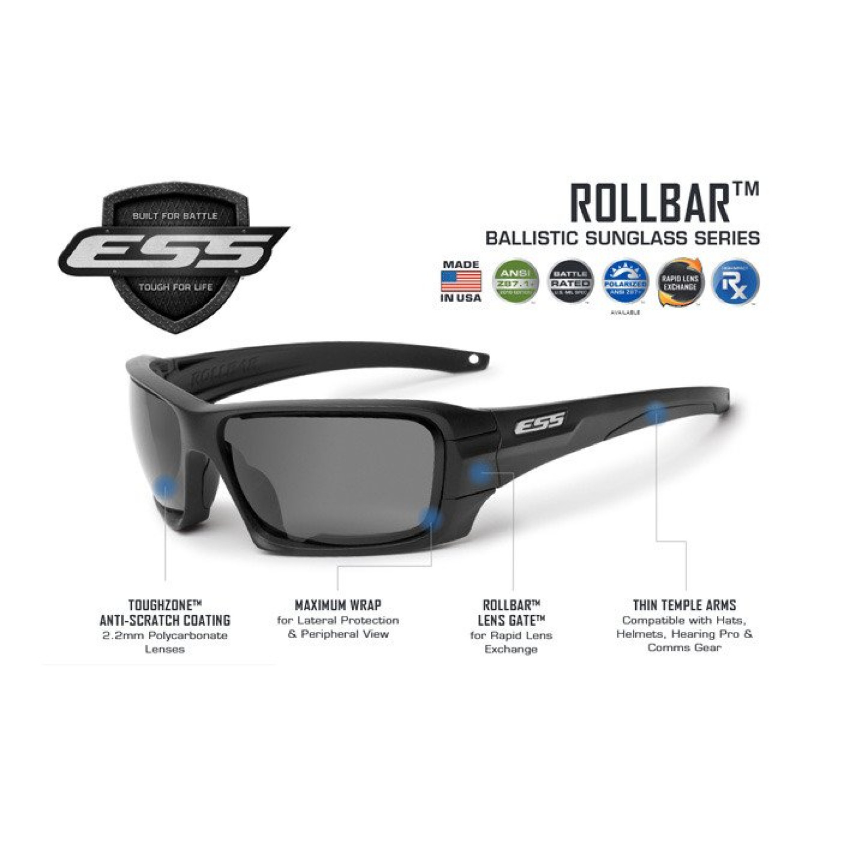 Окуляри ESS Rollbar відповідають балістичним стандартам США MIL SPEC MIL-PRF-32432, ANSI Z87.1-2015, CE і федеральним стандартам OSHA.