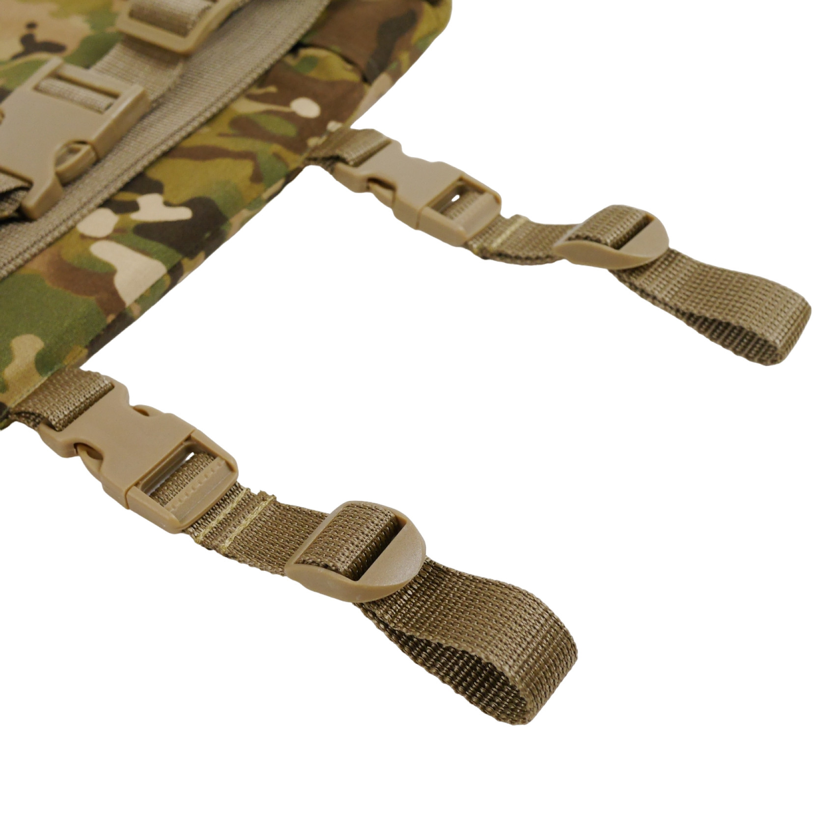 Крім того, килимок має два варіанти кріплення для зручності використання. Перший варіант передбачає використання підвісів зі стропи з двома додатковими фастексами для кріплення до системи MOLLE на плітонесці або РПС. Завдяки швидкознімним фастексам, сидіння легко і швидко монтується і демонтується.