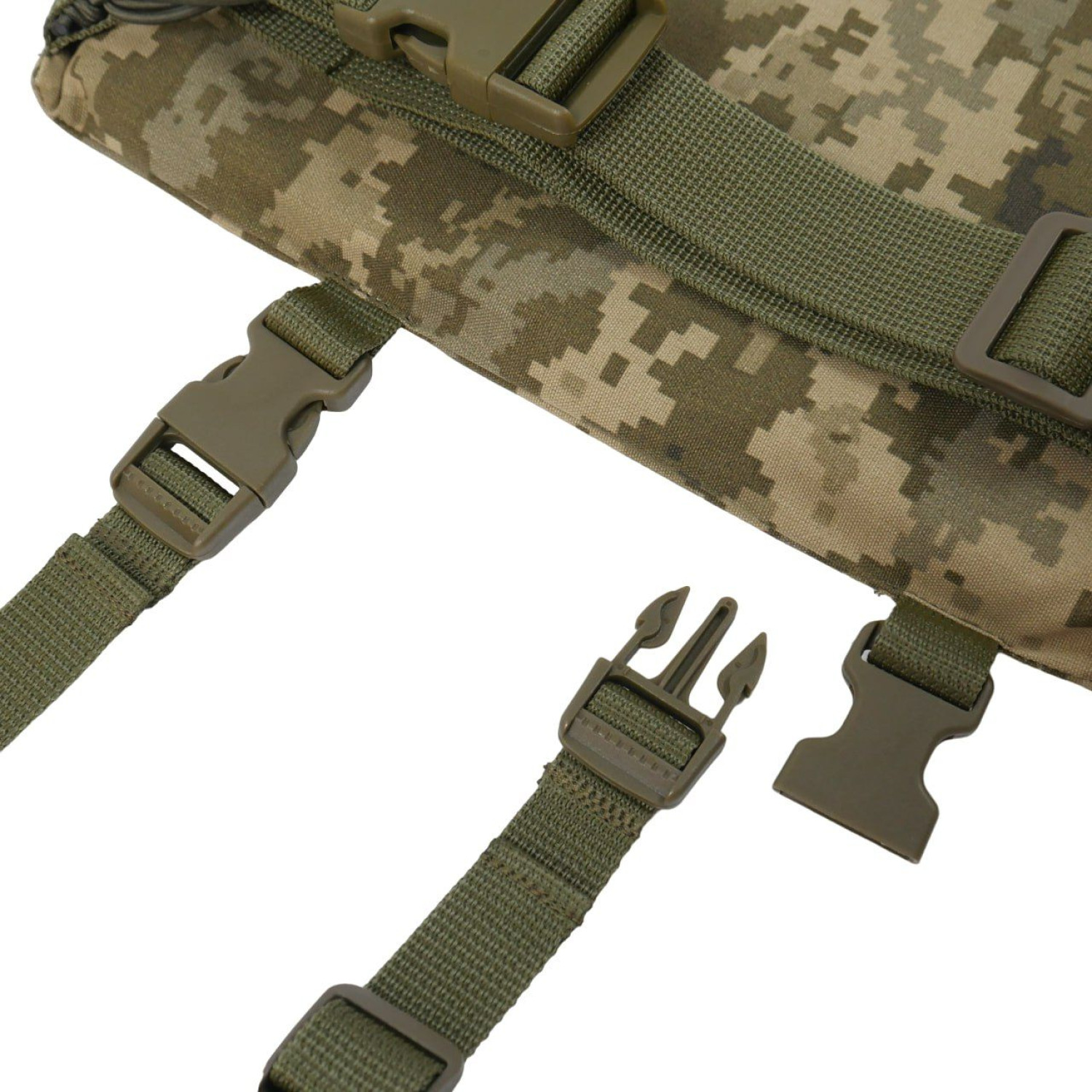 Крім того, килимок має два варіанти кріплення для зручності використання. Перший варіант передбачає використання підвісів зі стропи з двома додатковими фастексами для кріплення до системи MOLLE на плітонесці або РПС. Завдяки швидкознімним фастексам, сидіння легко і швидко монтується і демонтується.