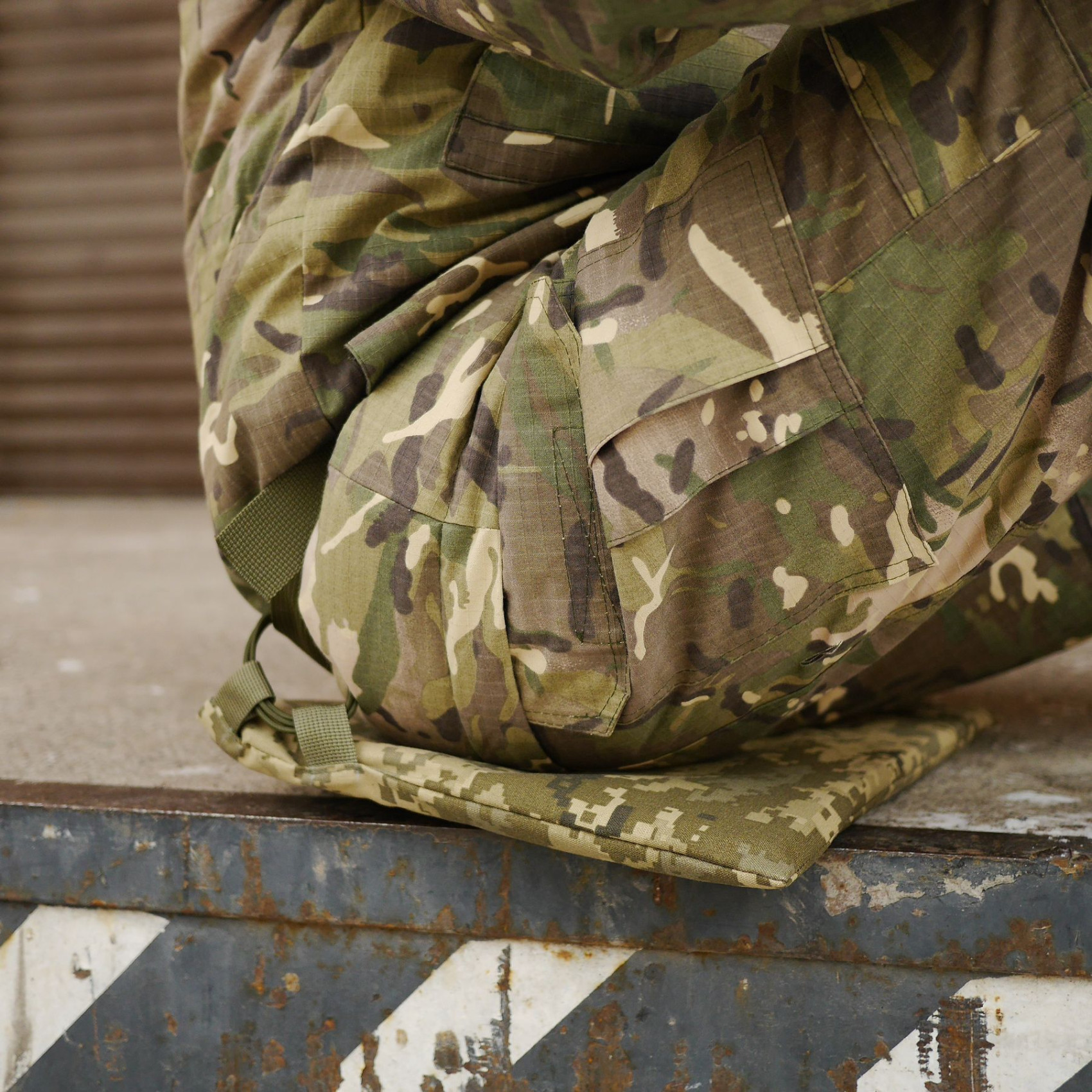 Чохол килимка виконаний з військової тканини Cordura nylon 500D, забезпечуючи високу зносостійкість і можливість зміни наповнювача для тривалого використання.
