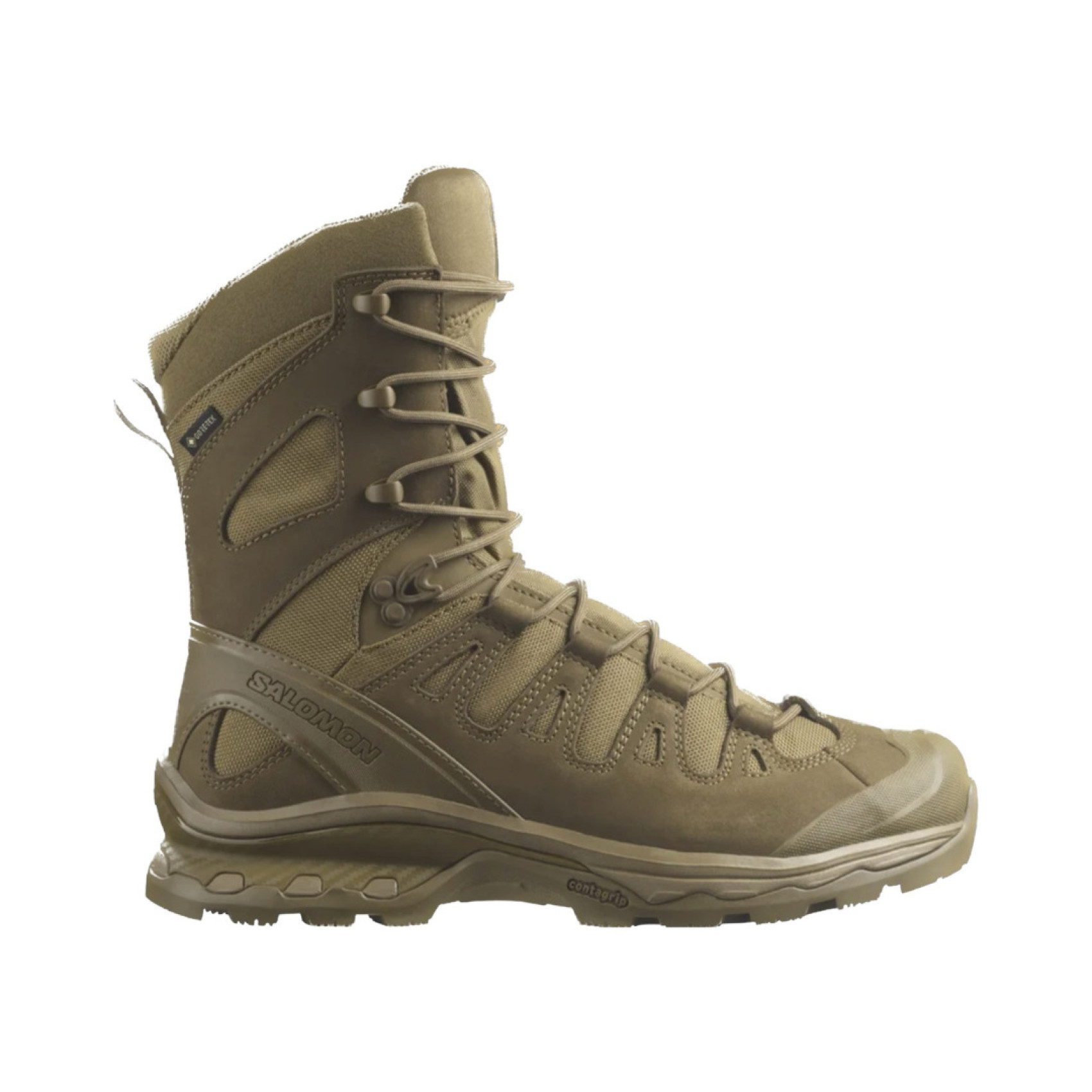Оснащені технологією GORE-TEX, берці Salomon Quest 4D Forces High GTX Койот гарантують підтримку стопи та надійне зчеплення на гірських схилах. Гумовий носок і п'ята ефективно амортизують удари, забезпечуючи високий рівень комфорту на будь-якій місцевості. Інноваційна система SensiFitTM, що охоплює стопу від проміжної підошви до традиційної системи шнурівки, забезпечує надійне, точне та індивідуальне прилягання.